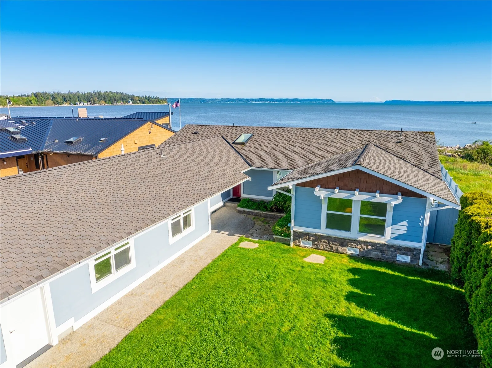 Welcome to level waterfront on Livingston Bay, known for abundant wildlife, especially birds of all varieties, warm waters and welcoming community. This home was completely rebuilt in 2007. Single level living with 2 bedrooms + additional guest room, 2 baths, living room, cozy media room, walk in pantry, soft close cabinets, hand scraped oak flooring, new furnace, 40 year architectural comp roof, composite decking and more. Mature landscaping provides nice privacy from the quiet street. 400 sq. ft. heated, finished art studio space wired for 220 together with loads of storage. 480 sq ft oversized garage for paddle boards and toys! Only waterfront living can offer this kind of landscape. Sunny southern exposure with Mt. Rainier views!