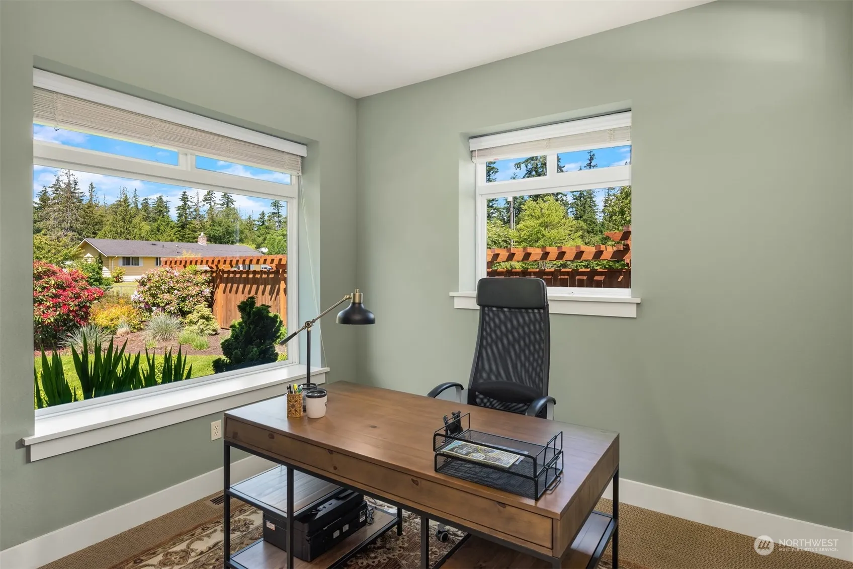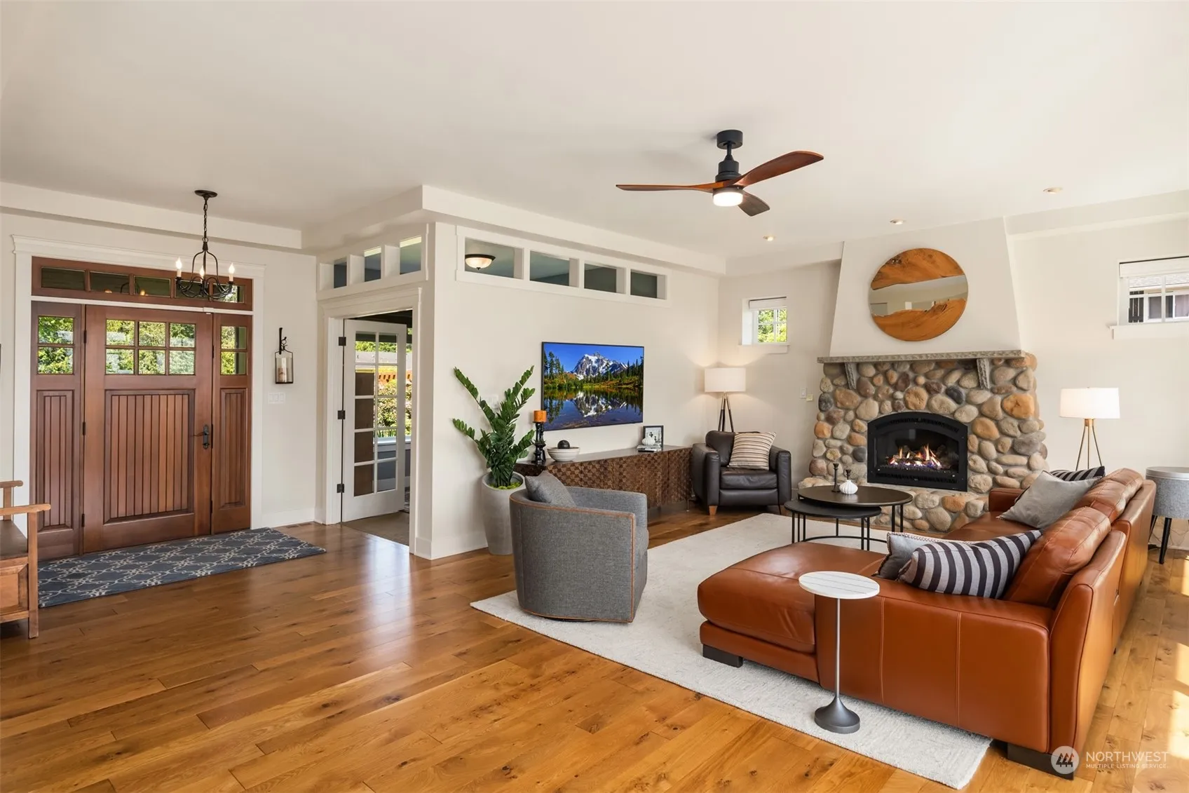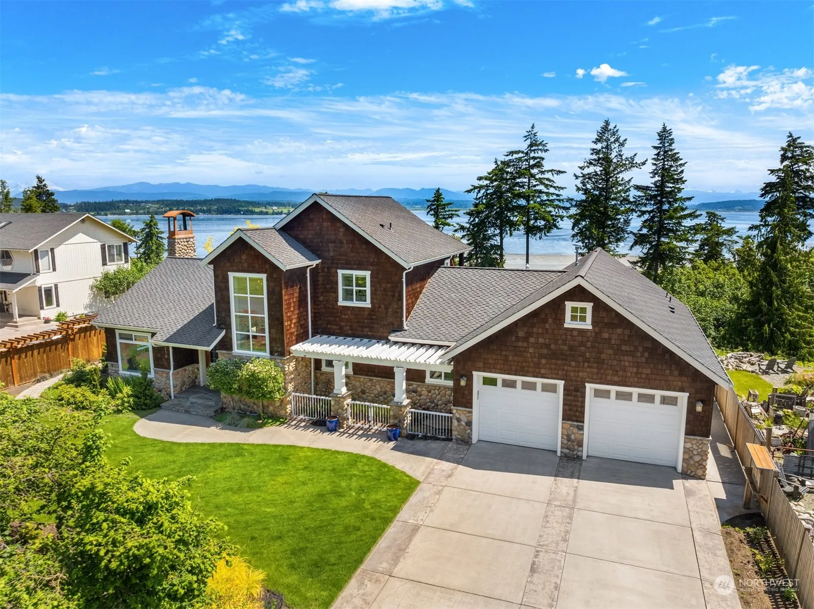 Just an hour from the city, escape to this exquisitely furnished custom home and enjoy the peace and tranquility of high-bank waterfront living. Revel in serene views of Mt. Baker over Port Susan. The great room with dedicated office off the entry, features a stone mantled fireplace, hardwood floors, leathered granite kitchen island & a wall of windows w/remote-controlled sun shades, offering access to a flagstone patio & beautifully landscaped grounds. The primary suite boasts a spacious walk-in closet, a 5-piece bath, & private patio. Upstairs, watch eagles soar from the flex room & deck. A second bedroom & full bath provide a perfect guest space. A 2-car garage offers ample room for vehicles & toys! Furniture conveys with sale.