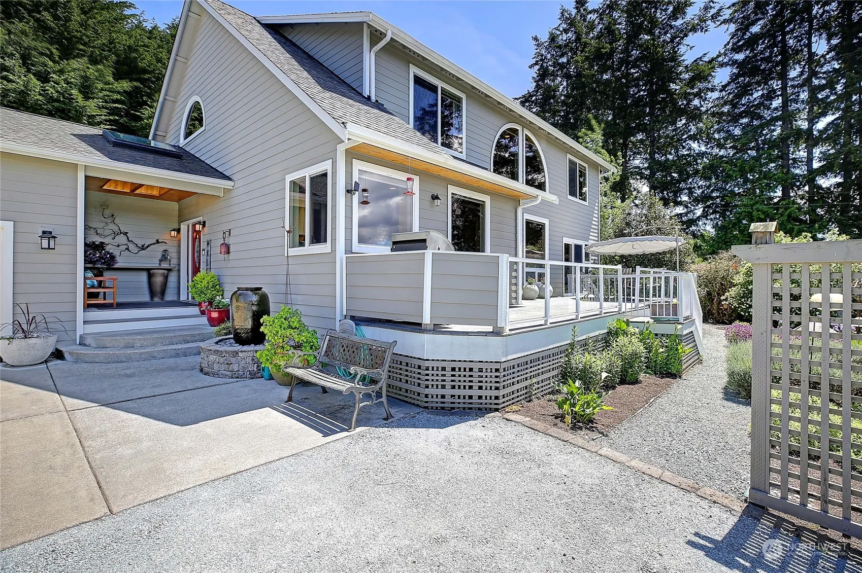 Enjoy private Camano Island living with this great home and neighborhood with outstanding views of Saratoga Passage, Olympic Mts, beautiful year-round sunsets, bald eagles, entertaining boat and whale traffic. First time on the market, this 3 beds 2 bath home is 2229 square feet with complete comfortable main floor living including primary bedroom. Main floor also includes a welcoming entry, vaulted living room, formal dining area, powder room, large craft room/laundry and amazing spacious bright kitchen with great views featuring maple cabinets, large custom island with eating space, granite counters, high end stainless appliances and oversized 2 car garage. Home also features its own community beach access and nearby Mabana boat launch.