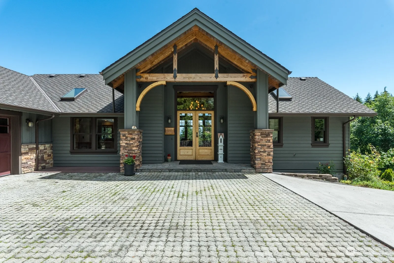 Builder’s own home w/incredible detail & craftsmanship. Impressive entry into the main living w/tall vaulted ceilings & exposed beams milled here on Camano. Beautiful cherry hardwood flrs, wood-clad windows, custom millwork & trim. Views of the bay & vibrant sunrises. Primary suite on main w/soaker tub, glass walk-in shower, heated flr & huge walk-in closet. 2nd main flr bed also has en suite bath. Down the custom milled stairs, a living rm w/tall ceilings, fireplace & 2nd kitchen as well as the 3rd bed & office/den, all w/radiant heated flrs. This would be a great multigenerational home. Cedar siding, 50 yr pres roof. 2 car gar off main+2 car gar off lower. Access to 3 Country Club beaches! Excellent community on beautiful Camano Island.