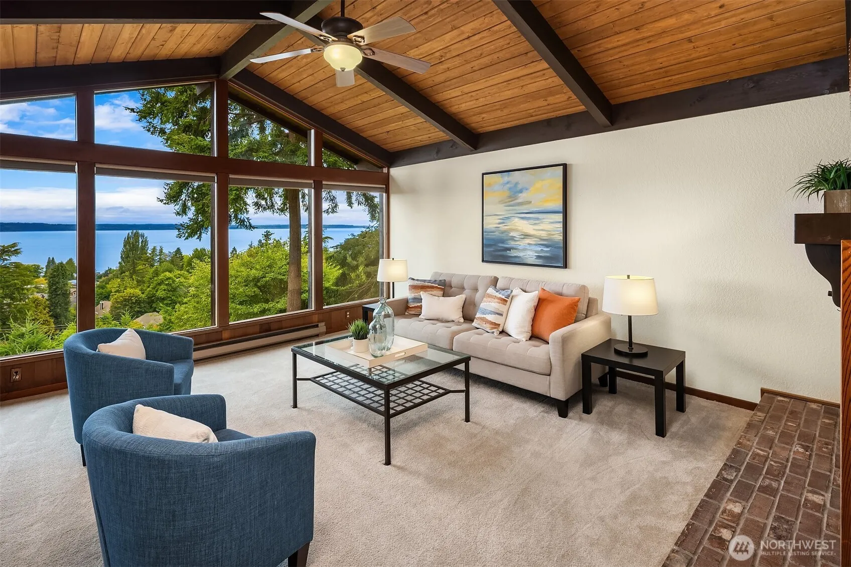 Panoramic, mesmerizing sound, strait & mountain views from each level of this extraordinary NW Contemporary home. Located in a prime location on a private drive in Seaview, enjoy vaulted ceilings & simple natural light from the wall of windows in the living/dining room/kitchen, perfect for entertaining! Breathtaking views from the main floor primary bedroom with en suite and a private deck. The versatile lower level offers a large bonus room + 3 bedrooms, 1.75 baths w/ MIL potential. Envision the additional potential in the unfinished lower level shop area. Enjoy a game of pickle ball on the sports court. This quiet neighborhood provides easy access for commuting, close proximity to downtown Edmonds shops, restaurants, marina & beachfront.