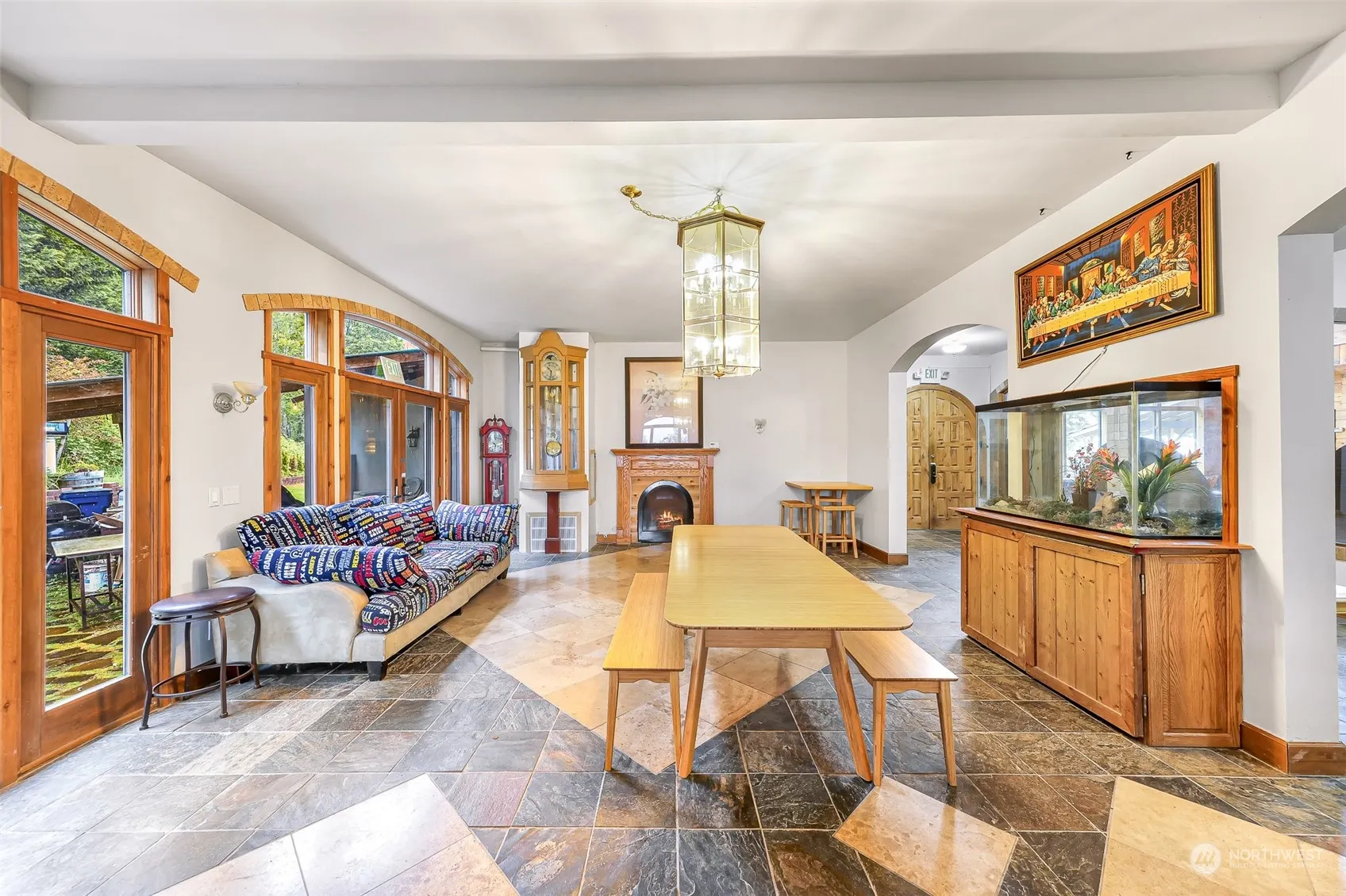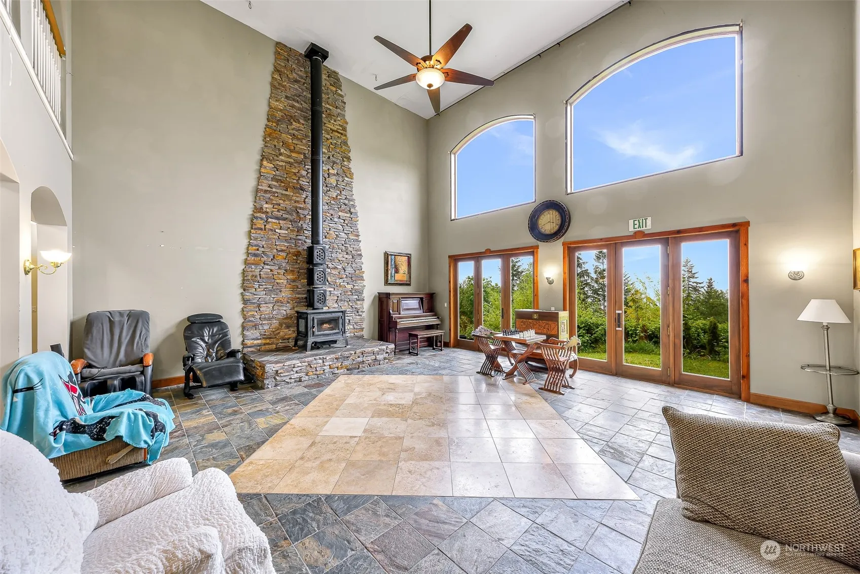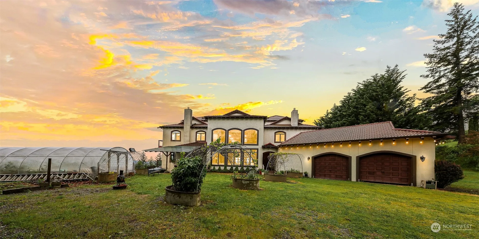 Tuscan Mediterranean inspired villa built in 2000 overlooking mountains & Skagit river. Upon entrance you’re welcomed by a grand hallway leading to stairs. The grand kitchen & dining room + ballroom style + informal living room + entertainment space + yoga space. Sauna + 2 3/4 baths. Grand Hall is formal living rm w/stone FP + vaulted ceilings & leads to yard w/breathtaking views. 1 bed , 1 full bath, total 3 3/4 baths + laundry rm. Primary en-suite on 2nd floor w/full kitchen. Additional 5 beds + 1 more full bath. On the 3rd level you will find 2 office suites. There is a basement w/wet bar. Features attached 2 car garage + detached 2 car garage w/living space on the top. Energy source is radiant heat, propane & furnace. Welcome Home!