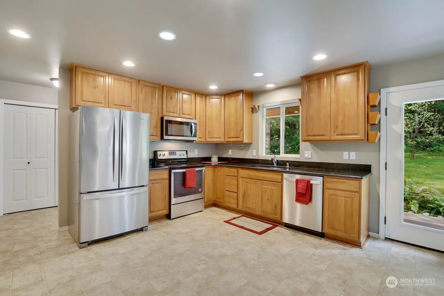 Discover the perfect blend of modern comfort & seclusion. This beautiful 2-story 3+ bedrm, 2.5 bath home boasts ample indoor & outdoor living space on 3.2 acres. Garden space, trails, seasonal creek & pond, a nature lover’s paradise. Main floor features a modern kitchen w/ granite counters, dining area, living rm, office/library, 1/2 bath & mudrm w/ access to 2-car garage. Upstairs, 3 bedrms, including a primary suite w/ an en-suite bathrm & WIC, 2 bonus rms, spacious landing & laundry. Enjoy year-round comfort w/ A/C & plentiful upgrades including brand new carpet throughout! 2 mins from public lake access & boat launch. Conveniently located near Bellingham & Burlington, & 10 mins from I5, this property combines privacy w/ accessibility.
