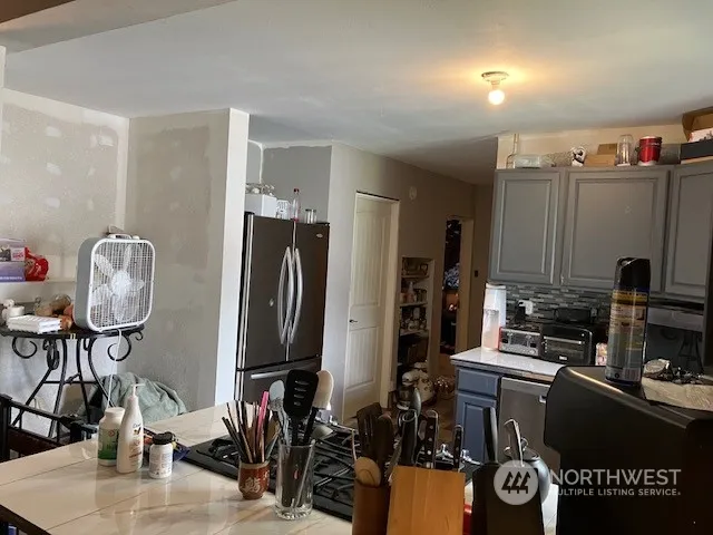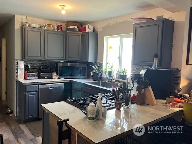 Fixer on multi use city lot. Repairs have been started. Livable home just needs your finishing touches. 4 bedroom 1 bath w/large open floor plan and fireplace. Efficient gas furnace. Carport with electricity. Large barn/shop with power! Additional out building.