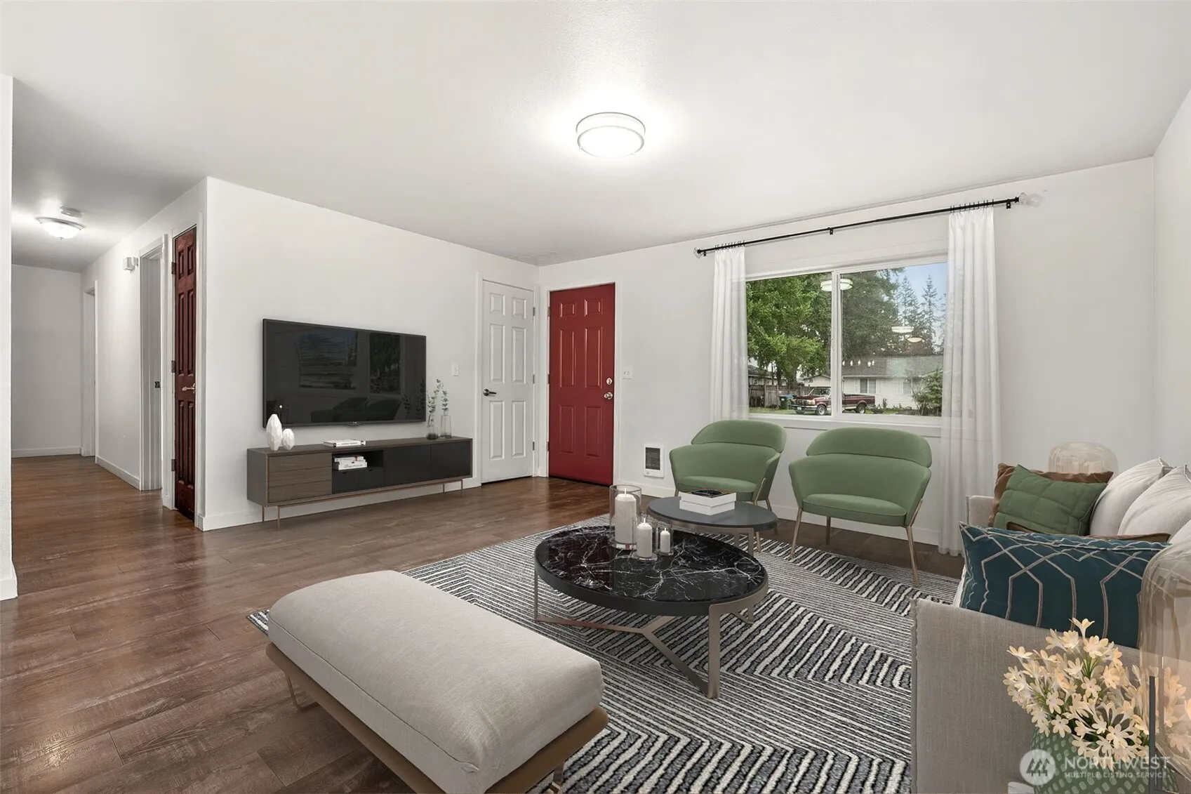 Welcome home to this beautifully remodeled 4-bedroom 1-story home tucked away on a quiet dead-end cul-de-sac in Yelm. Inside, you’ll find a bright, open-concept layout filled with natural light and a living room that flows seamlessly into the fully updated kitchen. The kitchen features stainless steel appliances, quartz countertops, and a sit-in peninsula, perfect for everyday living and entertaining. The primary bedroom includes a walk-in closet, and durable laminate flooring runs throughout the home for a clean, modern feel. Major updates include a metal roof on both the home and shed (2018) and thoughtful interior remodels completed in 2022, including the kitchen, bathroom, and flooring. The refrigerator, washer, and dryer all stay, making this home truly move-in ready. Step outside to enjoy the fully fenced, spacious backyard with plenty of room for gardening, pets, or play. A large storage shed adds extra functionality, and there’s ample parking with an RV/additional parking slab. Plus, no HOA gives you flexibility and freedom. Ideally located close to everyday amenities, outdoor recreation, and commuting routes—Yelm Dog Park (.4 miles), Yelm Prairie Line Trailhead (.7 miles), and Longmire Community Park (1.5 miles) are all nearby. You’re also about 30 minutes from two JBLM gates, making this a convenient option for commuters. This move-in ready home offers the perfect blend of modern updates, outdoor space, and a peaceful neighborhood setting—come see it for yourself!