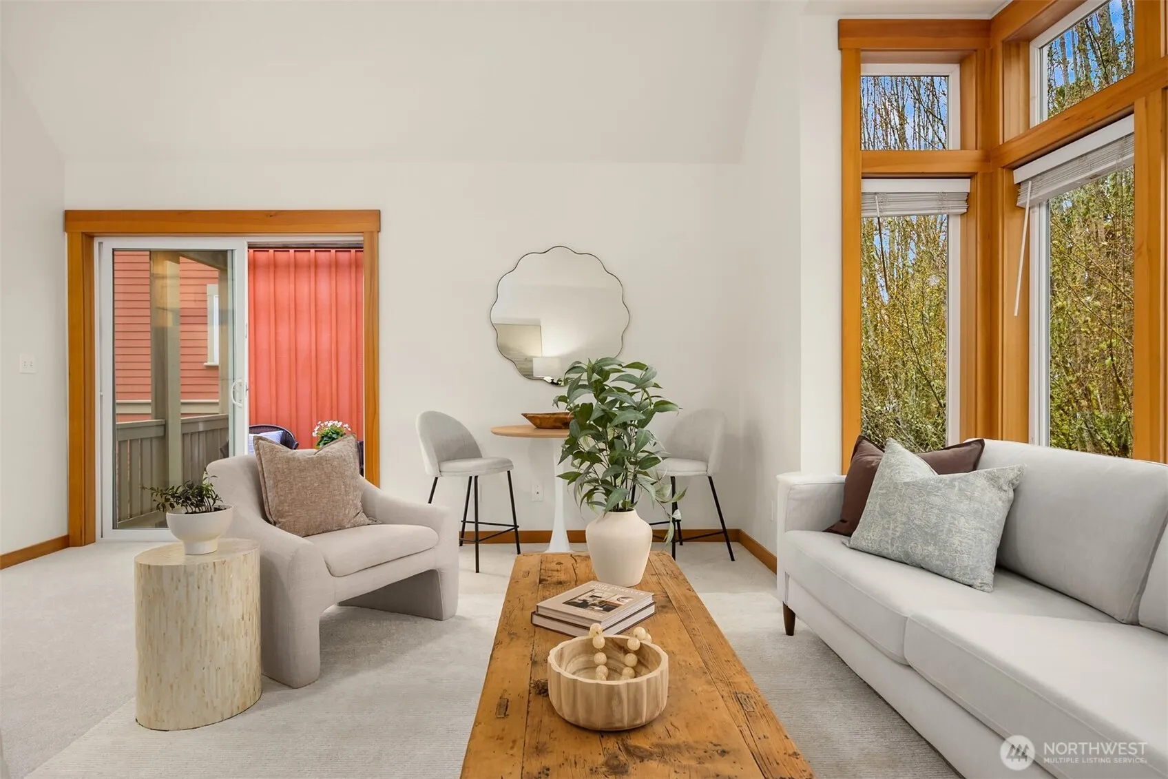 Stroll, Sip, and Stay – Winslow Awaits. This bright, beautifully updated condo is just steps from the downtown hub. Enjoy a quick stroll to quaint local shops, award-winning restaurants, theater, gym, and more, with easy access for the Seattle ferry commuter. A private outdoor entry leads upstairs to comfortable single-level living. Extensively remodeled in 2026, the new kitchen features crisp white cabinetry, butcher block counters, and stainless steel appliances. Vaulted ceilings elevate the main living area and bedrooms, while a large bay window frames leafy outlooks toward the street. A propane fireplace adds warmth and ambiance, and new flooring flows throughout. From the Great Room, step out and relax on the sweet open spacious 7′ x 7′ balcony for a breath of fresh air! Detached 400 sq ft tandem garage with additional storage space—perfect for bikes, kayaks, paddleboards, and other Island adventures.