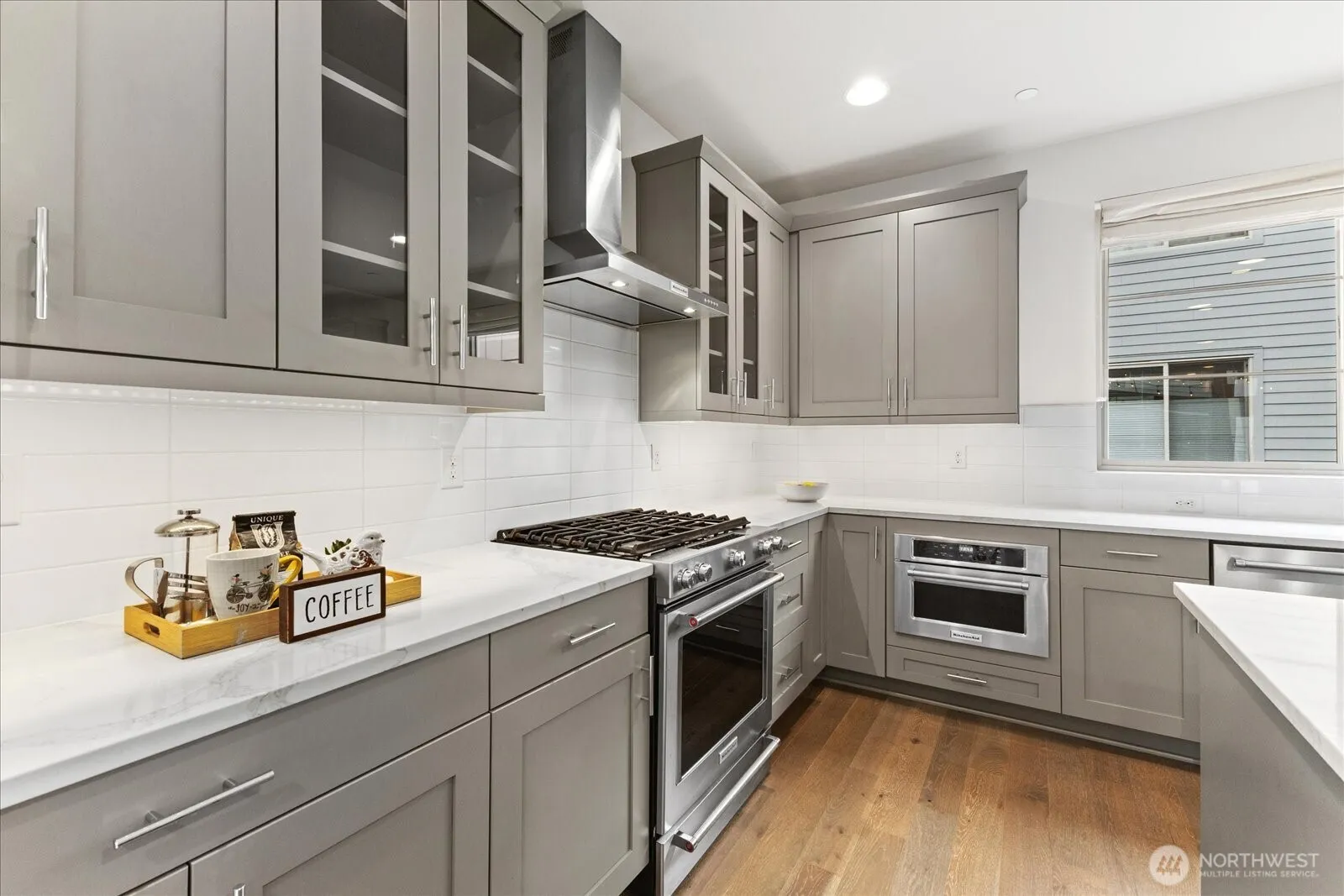 Experience elevated living in this exceptional end-unit 4-bedroom townhome in the sought-after Vareze Community. This light-filled home features an open floorplan with soaring ceilings, hardwood floors on the main level, a cozy fireplace, and an abundance of oversized windows. The modern kitchen blends style and function with sleek quartz surfaces, stainless steel appliances, excellent storage, and an expansive island perfect for entertaining. A private ensuite bedroom on the lower level offers ideal guest or multi-generational living. Upstairs, the remaining bedrooms include a showstopping primary suite with extra-tall ceilings, generous space, and a beautifully updated bathroom with elegant fixtures and abundant natural light. Home is smart home enabled with Lutron light switches, Ring doorbell cameras, & MyQ garage opener. Additional upgrades include custom window shades, fresh interior paint, and a 2-car garage with EV charging. Located within the coveted Lake Washington School District, with quick access to freeways, Totem Village, and major employers including Microsoft, Amazon, and Google. With no rental cap and a completed pre-inspection, this home is an exceptional opportunity in one of the area’s most convenient locations.