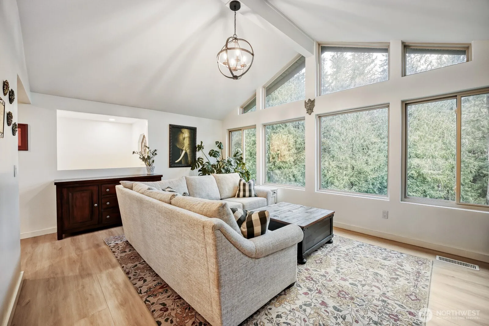 An Exceptional Property. Updated home and a detached shop on 3 plus acres that borders 60 acres of King County Parks Land around Bass Lake. The property is situated at the end of a paved dead-end street in a community of well-kept homes, it is partially wooded for privacy, has walking trails around it, areas for goats and chickens, a garden area that is fenced to keep the wildlife out and a large level area for horse potential. The house has a new roof, new HVAC components and a new water heater. Completely updated, custom kitchen has grey tone granite countertops over white cabinets, stainless steel appliances, a large center island with seating and tons of storage. LVP flooring and updated solid core doors and trim throughout. The living room has soaring, vaulted ceilings and a wall of windows to take in an epic view across the grounds to Bass Lake. The daylight basement has an updated rec room with a wet bar and a propane insert in the fireplace for cozy evenings in and a huge laundry room/half bath that is loaded with custom cabinets and a large sink. Attached two-car garage plus a four-car detached shop. The shop is light and bright inside, has 20-amp service and is insulated and heated for year around comfort. Come and enjoy living in this private, park-like setting.