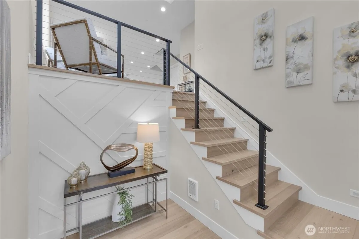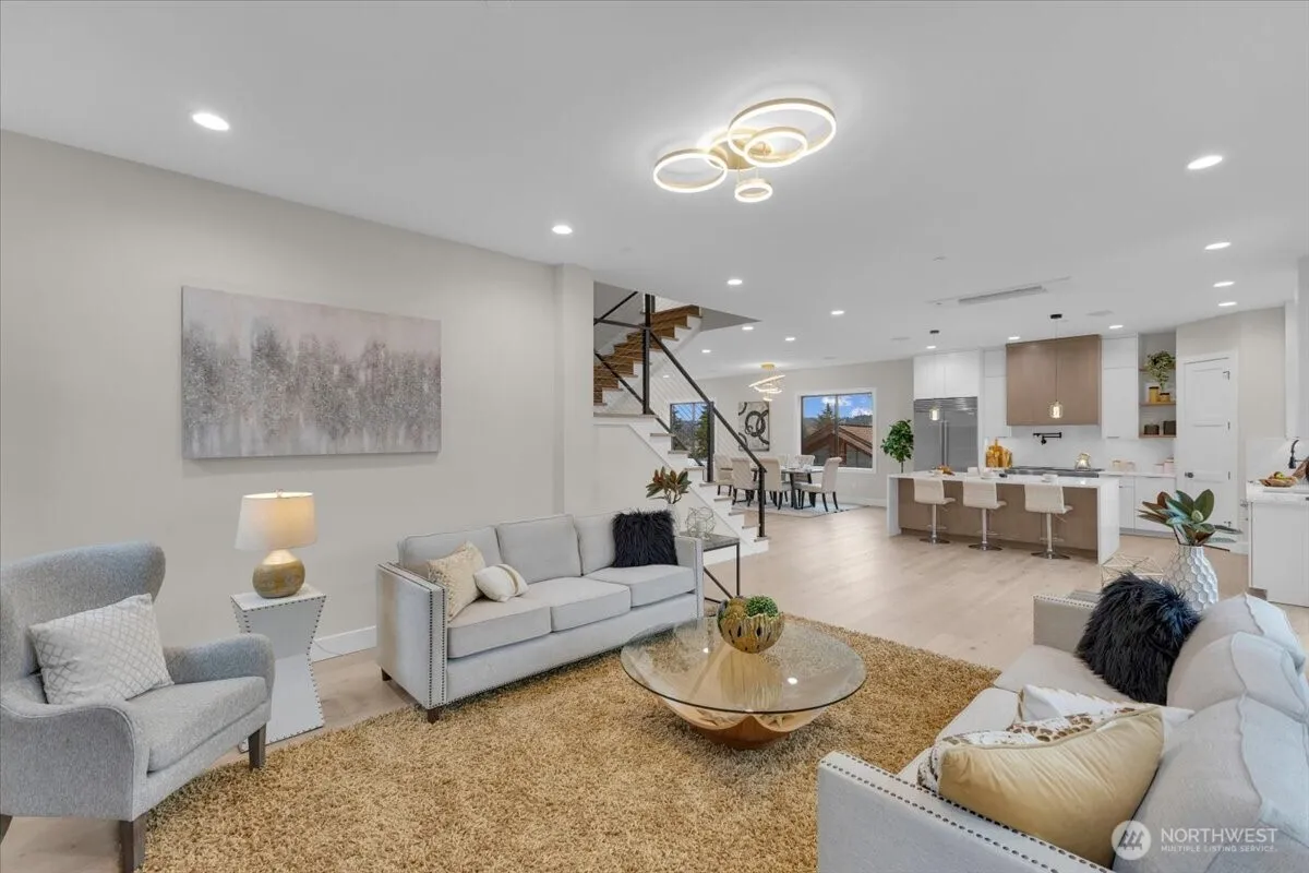 This rare 5,149 SF north-facing contemporary masterpiece features a full ADU, ELEVATOR, and SOLAR. Designed for multi-generational living or premium rental income, the builder is offering a $50,000 credit toward interest rate buydown or closing costs. Experience an open-concept layout bathed in natural light with 10′ ceilings and 7″ wide-plank hardwoods throughout. The Chef’s kitchen is a showpiece with Wolf appliances, Huntwood custom cabinetry, and a massive quartz island. The main residence offers 5 beds/4.5 baths + den, while the 3-bed/2-bath ADU features a separate entrance and Thermador appliances. High-efficiency upgrades include solar panels and zoned A/C. Prime location with peek-a-boo Lake Sammamish views, minutes to Microsoft, Idlewood Park, and SR-520.
