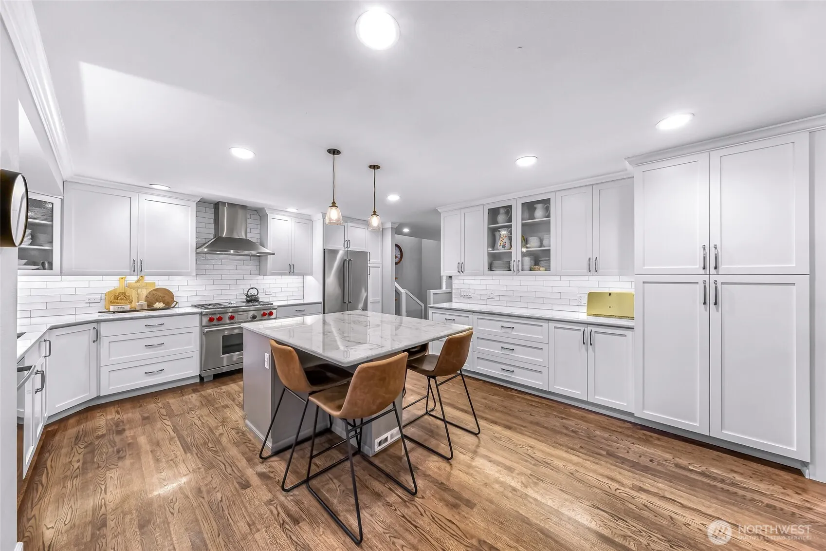 Exuding charm and sophistication, this beautifully updated home is nestled in the heart of Heritage Hills, offering space and style on a sun-filled corner lot and features seamless indoor-outdoor living. The spacious living room is anchored by a gas fireplace which flows seamlessly into the recently updated gourmet kitchen. This space is a culinary dream, featuring a top-tier Wolf range and high end appliances, all anchored by a large island and expansive dining area. French doors directly off the kitchen lead to the outdoor living area. The heart of this space is a covered deck, boasting a gas fireplace, built-in BBQ, heater, and dining area. Upstairs, the primary suite showcases shiplap accents, along with an updated spa-inspired ensuite bath. An additional bedroom and full bath complete the upper level. Downstairs, you’ll find two more bedrooms, a designer-updated bath, and a generous bonus room with a second gas fireplace and custom built-ins and provide ideal space for everyday living or entertaining, with direct access to the backyard. The expansive yard offers a dedicated patio, a relaxing hot tub, a sport court, and a generous lawn, providing space for both active recreation and quiet enjoyment. Enjoy the Heritage Hills outdoor neighborhood pool, parks and top rated LWSD schools.