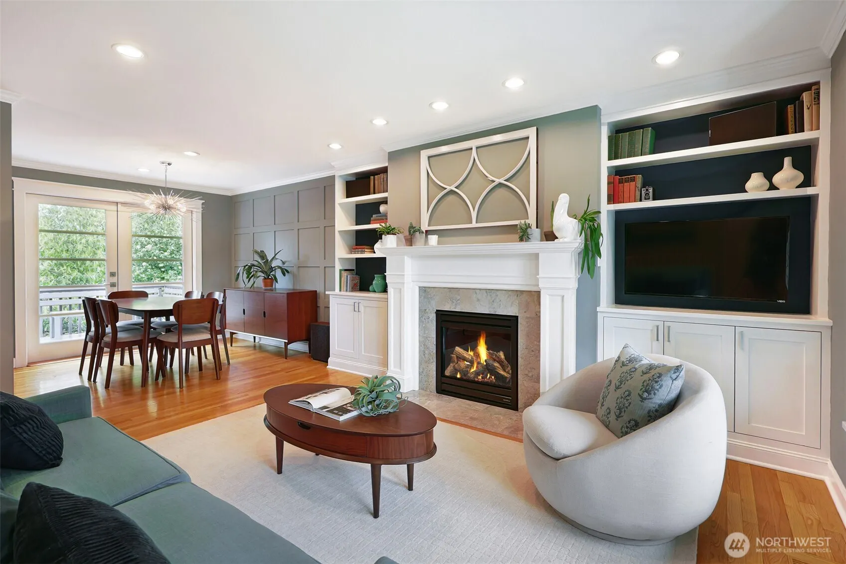 They thought of everything. This 1956 show-stopper meticulously remodeled over 18 years exemplifies true pride of ownership, exceptional craftsmanship. Enter to the living room anchored by a gas fireplace & marble surround, flanked by built-ins w/ discreet media connections. The dining room bridges the large deck with gas grill connection to the expanded kitchen. Part of a fully permitted 2-story addition, the heart of the home features black granite, a Miele gas & powerful Zephyr hood, Miele convection microwave oven, Bosch dishwasher & maximized pull-out storage. Summer sunrises light the NE-facing breakfast nook with built-in benches & under-seat storage. Original oak hardwoods through all 3 bedrooms on this level. A stunning, spa-inspired bath has dual sinks, Hansgrohe faucets, dual showerheads, heated floors, a seated vanity, 6’ tub & abundant storage—the through lines intricate tile & fine wainscoting. Lower level hosts the 4th bedroom with permitted south-facing egress window, ¾ bath, laundry with large utility sink, and a spacious rec room connected to the back yard with mature landscaping. Years of effort were poured into gabion walls, Bluestone stair treads with steel risers to a lit firepit area, corrugated metal raised garden beds, and a widened driveway into the over-sized EV-ready garage. Other updates include roof, gutters, insulation, Milgard windows, elec. panel, plumbing & much more. Quality at every turn—an exquisite home you must tour to fully appreciate!