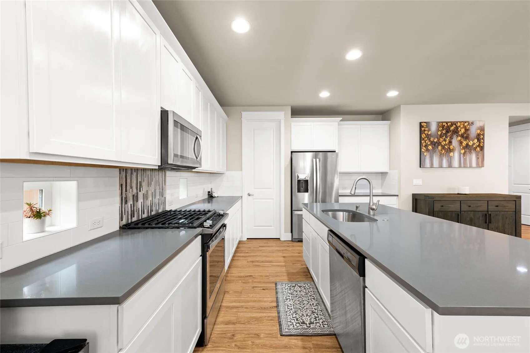 Welcome to a home that truly has it all! This open concept beauty is packed with builder upgrades and designed for comfortable everyday living. The stunning kitchen features quartz countertops and flows effortlessly into the dining and living areas. Retreat to the expansive primary suite featuring two walk-in closets w/ custom closet organizers and a spa-like oversized soaking tub. 4 bedrooms plus and office with a closet and a private backyard. The 3rd floor bonus living area offers incredible flexibility for a media room, playroom or guest retreat. A/C and front sprinkler system added. Home feels even bigger in person! Come see it today!