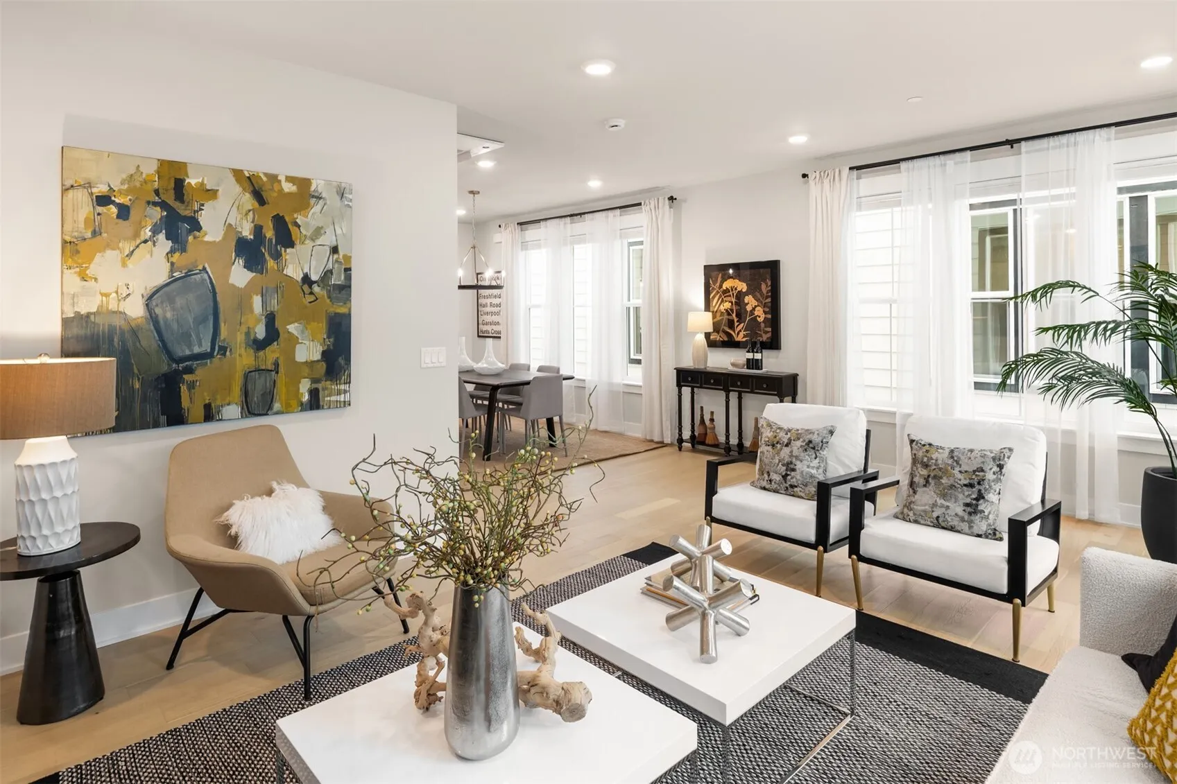 Aloha and welcome to Harvest, a vibrant wine country community along the picturesque Sammamish River. Dining, shopping, tasting, trails, and the luxury SOMM Hotel & Spa are all nearby, bringing the best of Woodinville living to your front door. This beautifully upgraded home blends modern farmhouse design with the ease of true move-in ready living. Several upgrades elevate this home including wide-plank white oak flooring on all three levels, window coverings already installed, custom built-ins throughout and all appliances included. The main living level features a thoughtfully designed kitchen with quartz countertops, a statement island, custom cabinetry, and premium appliances including a Wolf six-burner gas range and Bosch stainless appliances. A built-in wine bar with storage for up to 53 bottles adds a local touch for entertaining in the heart of wine country. The living room centers around a beautiful fireplace feature wall with custom shelving. The home features 9-foot ceilings enhanced by custom millwork throughout. The primary suite provides a relaxing retreat with a spa-inspired bath and oversized frameless glass shower. Enjoy a private patio with gas line ready for grilling and an EV charger already installed in the spacious two-car garage with bonus storage. Ideally positioned, this home enjoys a quieter and more private setting while remaining close to Woodinville’s renowned wineries, dining, and outdoors — all within the sought-after Northshore School District.
