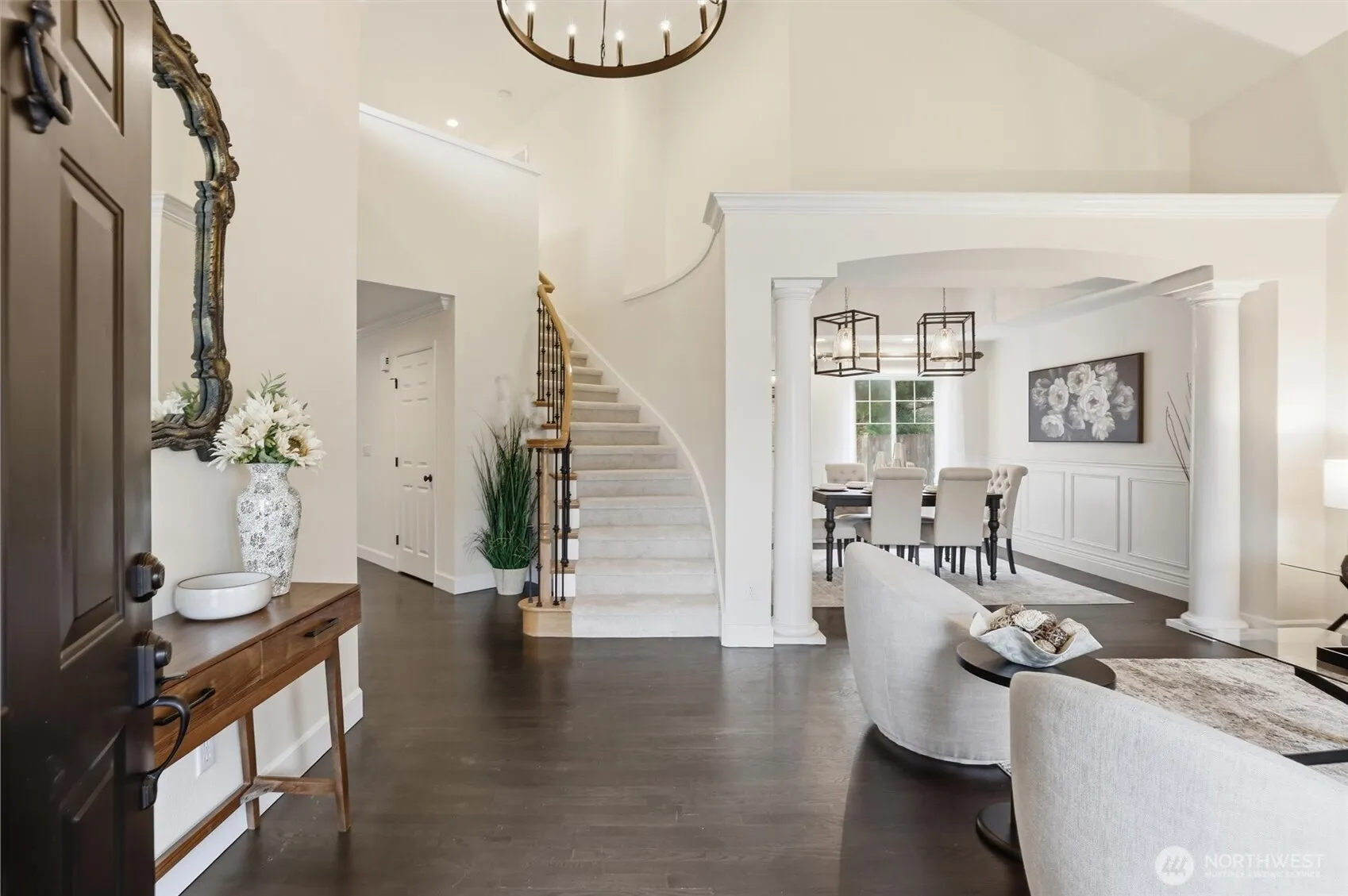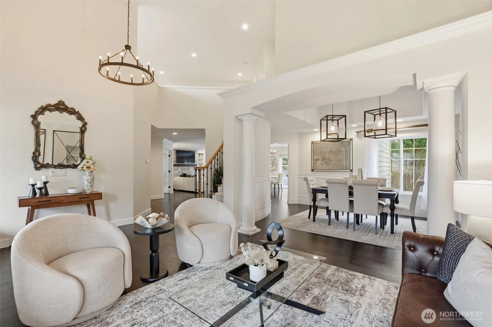Set on a prime corner lot, this inviting home offers a rare blend of privacy, warmth, and an open layout designed for everyday living and entertaining. A welcoming front porch with a porch swing creates a charming first impression and the perfect place to relax and enjoy the neighborhood setting. Inside, gleaming hardwood floors and sophisticated lighting carry throughout the main level, complementing the home’s open floor plan. The tastefully updated kitchen flows seamlessly into the dining and living areas, creating a natural gathering space anchored by a striking stone fireplace in the family room. Thoughtful architectural details, including several art niches, add character and display space throughout the home. A main floor bedroom or office and a 3/4 bath, provide flexibility for guests, work-from-home needs, or hobbies. Upstairs, brand new carpet adds comfort and a fresh feel, while a spacious loft offers additional room for a media space, play area, or lounge. Outdoor living continues on the Trex deck, complete with a built-in barbecue, premium hot tub, and wood-burning fireplace, creating a year-round space for entertaining and relaxing. Additional highlights include irrigation in both front and back yards, a spacious storage shed, and a garage with built-in shelving. Enjoy the Trossachs lifestyle with neighborhood trails, tennis and sport courts, soccer field, exercise area and the natural beauty of Soaring Eagle Park just minutes away. Wow!