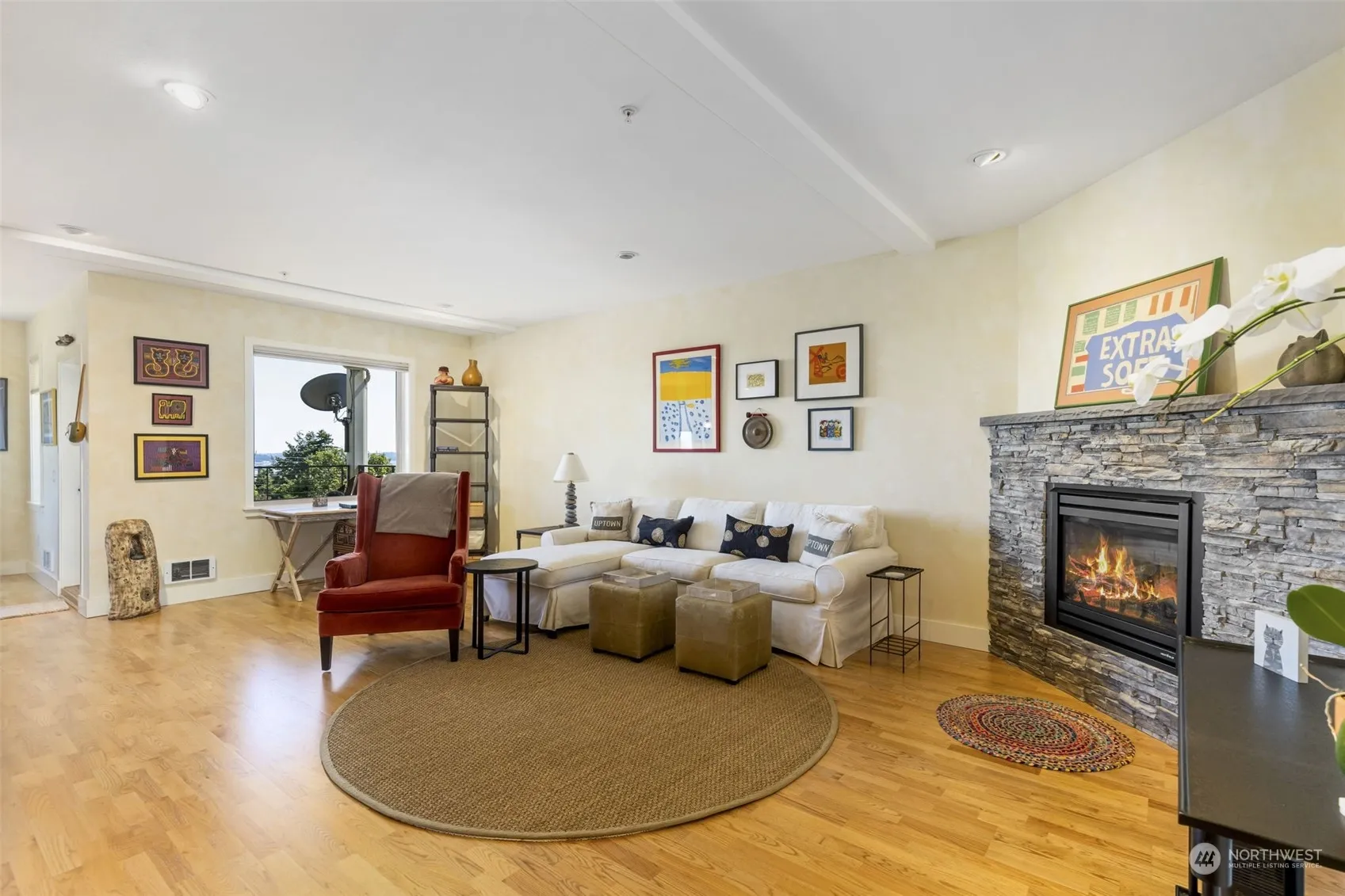 Living is easy in this Nordland Building Condominium located in the heart of Uptown Port Townsend across from The Carnegie Library. Features include: views of the PT Bay & Cascade Mountain Range, cherry cabinets, stainless appliances (new fridge), oak flooring, granite slab countertops, and a covered 10×10 deck which faces the water! You’ll notice the lovely condition, kept by a single owner. There is plenty of open space as the rooms easily flow from one to the next. Beside the view, the next best thing about this condo is the amazing location, where you can easily travel downtown to shop and dine or stay up top for the farmer’s market and a trip into Aldrich’s market! Plenty of street parking & the building is supported by an elevator!