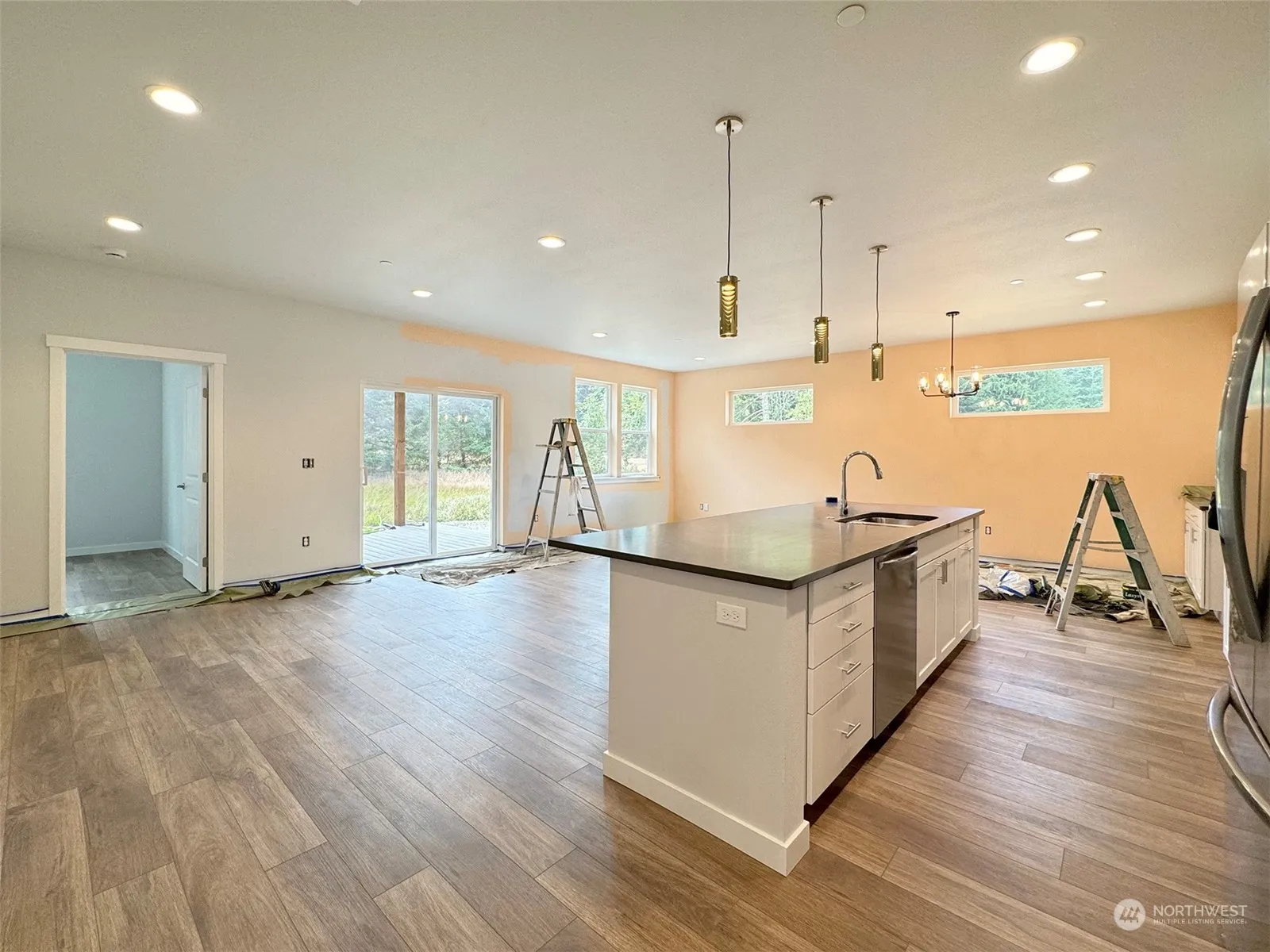 Discover Milwaukee Trails, the latest housing development nestled next to the Olympic Discovery Trail, a fully paved path that stretches to the Elwha River, favored for dog walking, cycling, and more. This single-level contemporary home boasts luxury vinyl plank flooring, quartz countertops, LED lighting, white shaker cabinets with soft-close doors, and a covered back deck. The primary suite features a double sink vanity, a spacious walk-in closet, and a walk-in tile shower with a frameless glass door. It also includes two guest bedrooms and a full guest bathroom. The home is equipped with two ductless heat pumps for efficient heating and cooling, as well as a two-car attached garage with an opener. A one-year builder’s warranty is included
