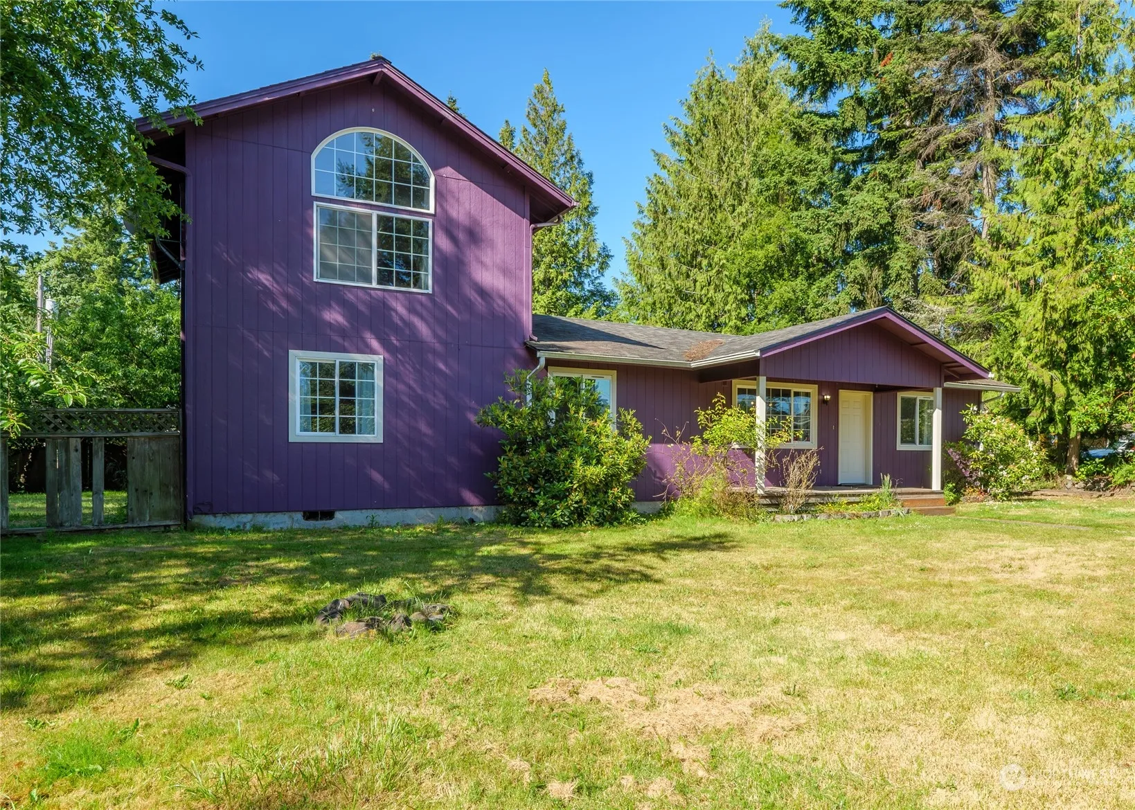 Spacious open concept 2144 Sq ft 4 bed 2 bath home with a secluded feel tucked away on a dead end st. Large primary bedroom suite takes up the entire second level (544sf) offering ample privacy and space with a large jetted tub, shower, walk in closet and room for a King-sized bed. 3 bedrooms are located on the main floor with plenty of space for sleep, storage and play in each room. Main living area is an open concept kitchen/ living/ dining space with plenty of windows. Large storage shed located in the back yard. Secluded level lot with mature fruit trees, fire pit, deck, concrete pad for hot tub and tons of space for parking on site.
