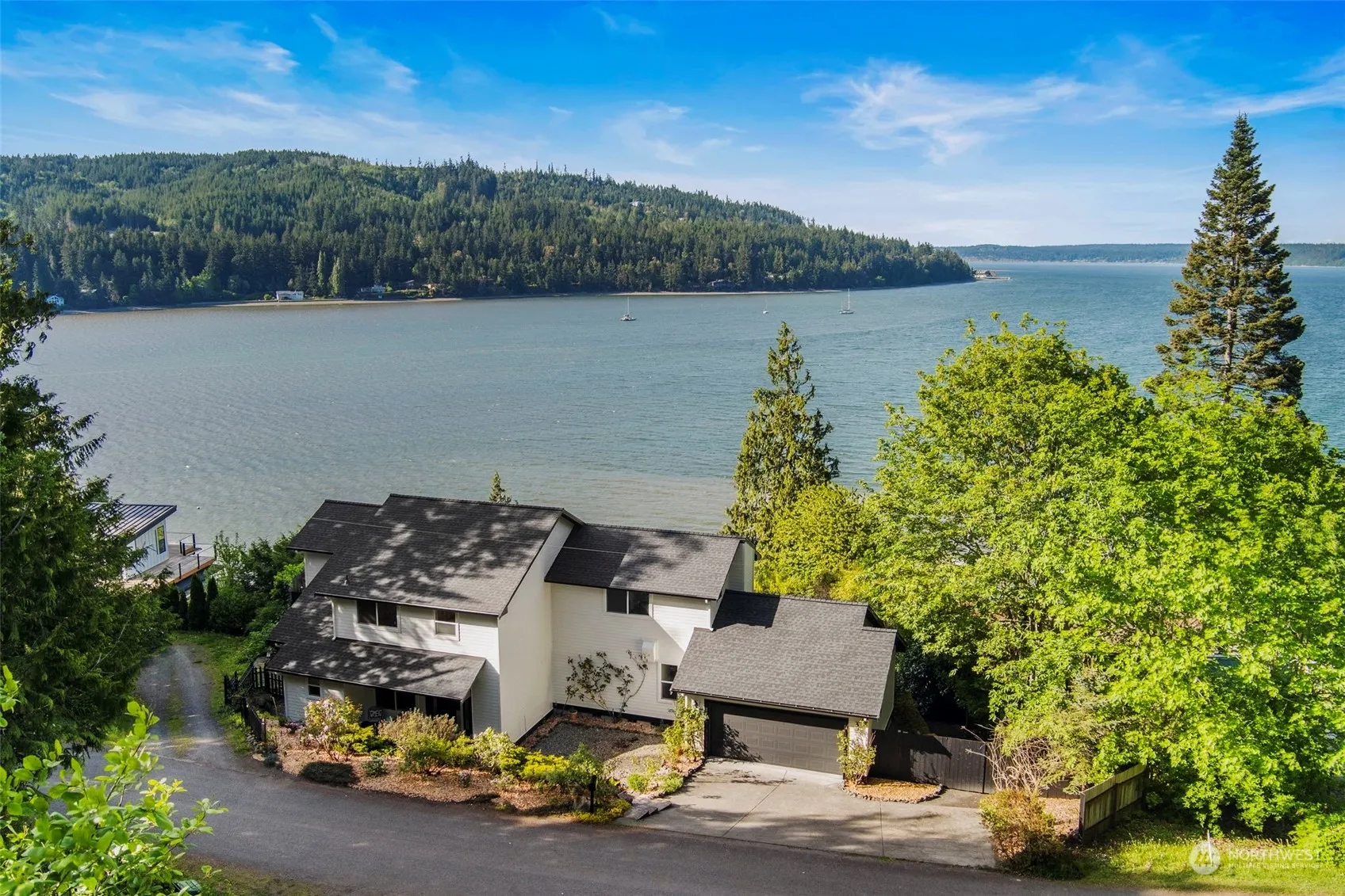 Live luxuriously with nature on the Olympic Peninsula. Watch the boats come in, eagles hunt and orcas play. This newly updated home has two primary bedroom suites, with two offices – one which can easily be used as a primary suite on the main floor. The perfect house for hosting friends, yet intimate enough just for you. Thoughtful, timeless gourmet kitchen with all the extras – including walk-in pantry, warming drawer, double ovens, and deep fryer. Stunning tiered garden path leads you past a pond and raised vegetable beds, down to your own private beach. Low-bank waterfront. Beach rights included. New hardwood oak floors throughout. You don’t have to do anything–just get to living.