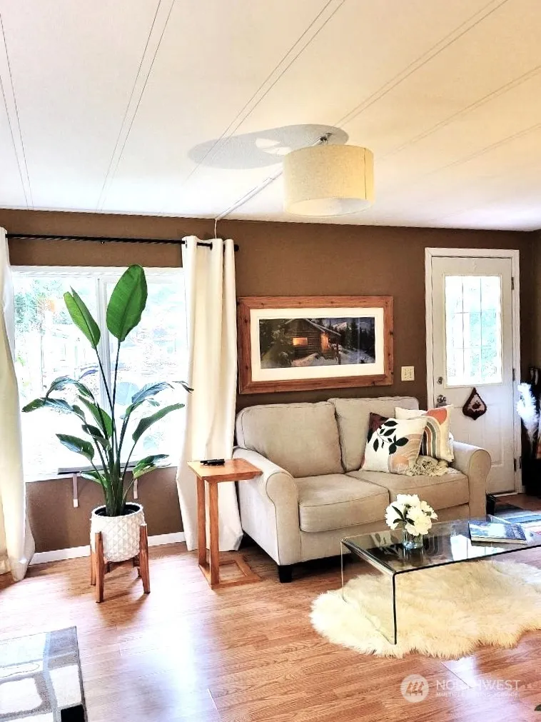 This cute 2 bedroom home with updates in kitchen include new lower cabinets, countertops and sink and bath features new flooring, sink and toilet is located in an ALL-AGES park that is so close to the city limits in Port Townsend. Paint, laminate flooring, windows upgraded, hot water heater, and new appliances in 2020. Enclosed back porch/catio off the kitchen leads to a nice paver patio to enjoy your private back yard. Beautifully landscaped. New metal roof being installed June 12th 2024. There is a storage shed that needs some TLC. Space rental is currently $350/month but is scheduled to go to $450 later this year.