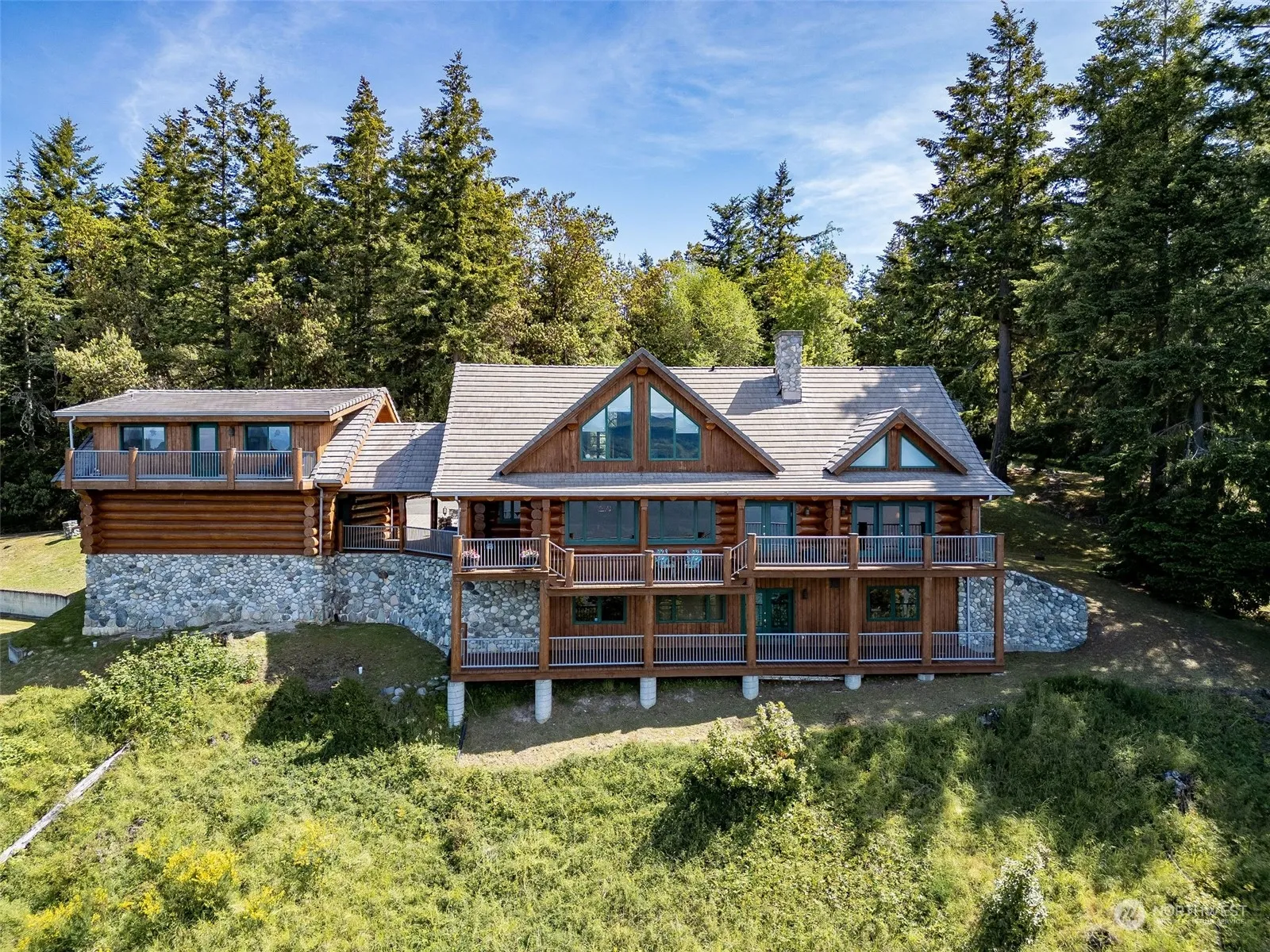 Experience the ultimate trifecta with views, character & privacy at this extraordinary property. The custom-built log home features breathtaking water & majestic Olympic Mountain views from every room. Perched above Discovery Bay overlooking Beckett & Diamond Points & in a quiet cul-de-sac, the log home is as comfortable & inviting as it is well-built. Three river rock fireplaces, concrete tile roof, hydronic heating system, & white oak floors in the great room are just a few of the details that will impress even the most discriminating buyers. Connected by a breezeway is a detached two-car garage & 672 sq ft. apartment above with views. Plus, approx. 2,500 sq ft. of clear cedar decking. Access to Ocean Grove’s private beach & trail system.