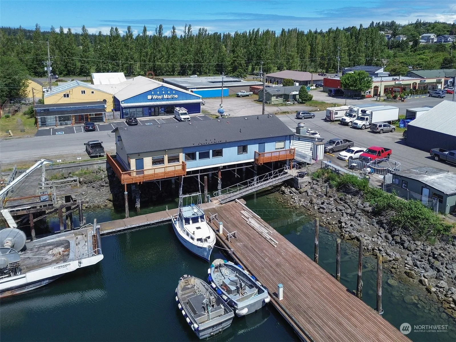 Prime opportunity: Waterfront Commercial Building on leased land. Currently home to Port Townsend Yacht Club, this versatile property offers a range of possibilities. Large meeting room, fully equipped kitchen, bar area, dedicated office space, & two bathrooms w/showers. Direct access to boat dock, perfect for marine enthusiasts or businesses catering to waterfront activities. Ample storage space ensures room for all your equipment, supplies, & inventory. Premier waterfront property in Port Townsend.