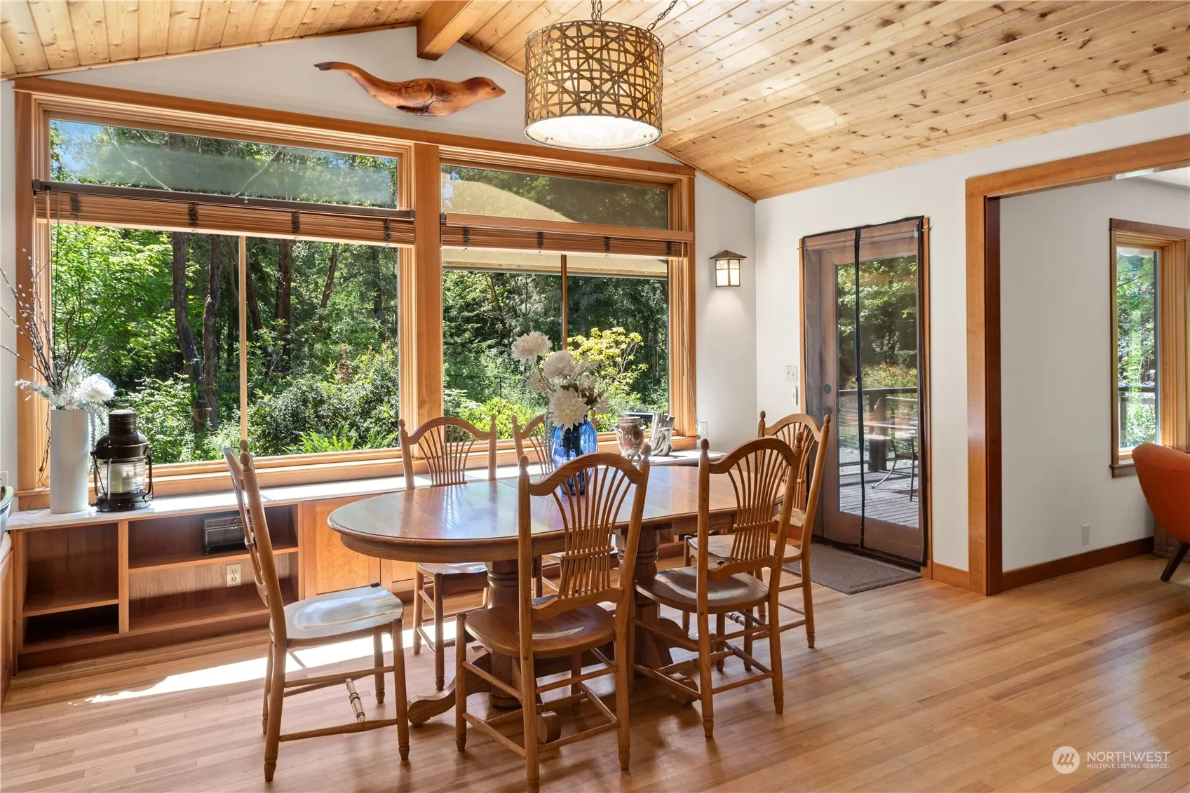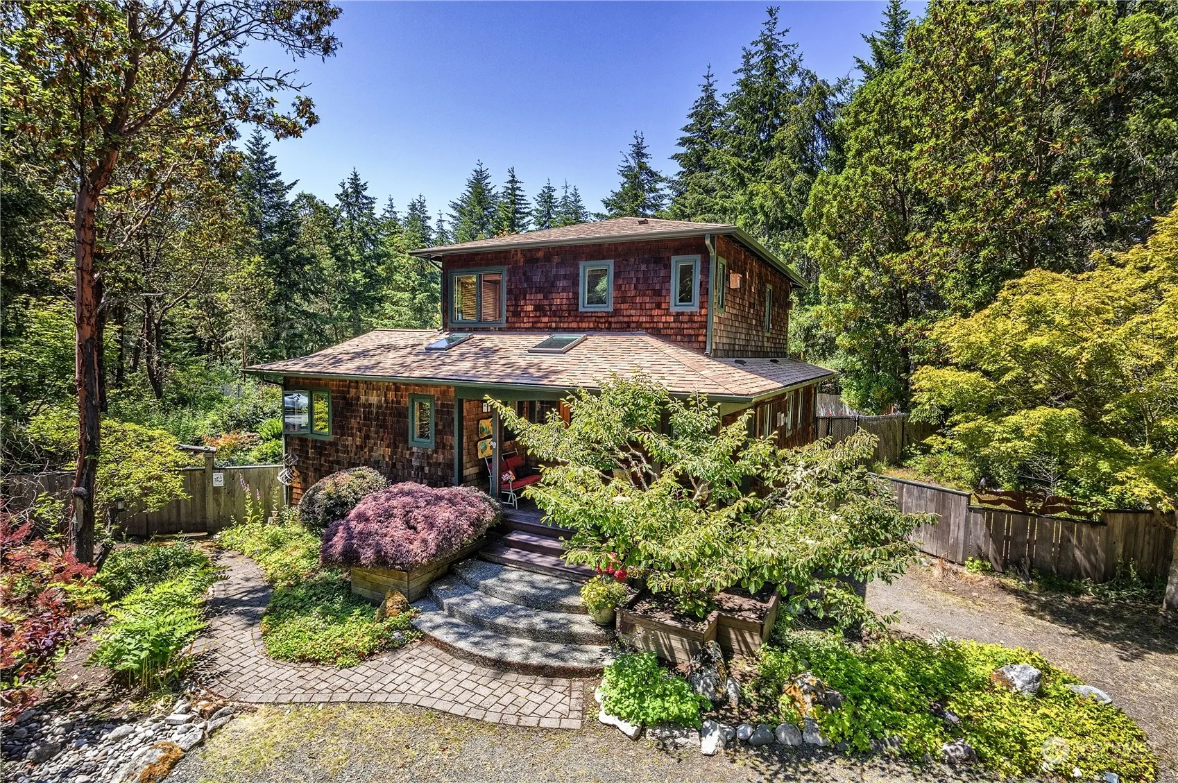 Nestled on 7.5 acres just minutes to town, this charming well-built home offers a blend of craftsmanship and tranquility. 2 bed/ 1.75 baths home eucalyptus hardwood floors, cedar vaulted ceilings, and cherry trim throughout. The main level boasts a kitchen w/ new granite countertops, a spacious dining area, cozy living room w/ a propane stove, full bath & a bedroom w/ a private deck leading to a hot tub. Upstairs, an open loft area serves as a perfect workspace or sitting area, and an oversized primary suite with a 3/4 bath. Detached 2 car garage with an ADU above, provides versatile living space or rental potential. Enjoy all-day sun on multiple decks and a patio overlooking mature, low-maintenance landscaping. New roof & skylights 2021!