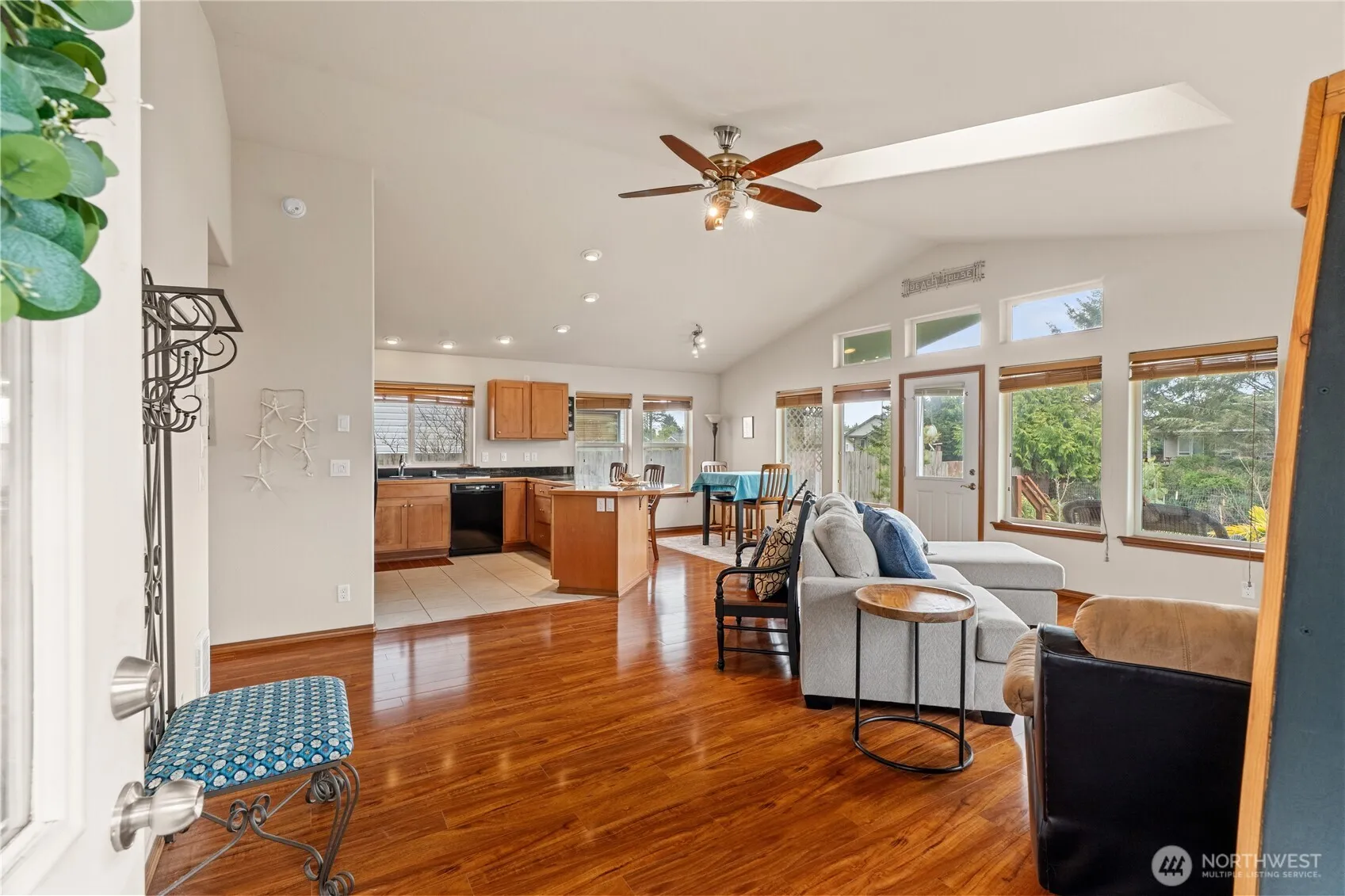 Thoughtfully placed, tastefully designed, and meticulously maintained, this canal-front home is truly a standout. Tucked away on a quiet dead-end street, the property offers a great amount of privacy with a fully fenced yard, lots of room for parking, a private dock, attached garage, and a spacious wraparound deck featuring newer composite decking, perfect for enjoying the views. Inside you will find two bedrooms each with walk in closets and two full bathrooms one of which is a part of the primary en-suite. Skylights and dormer windows fill the living room with natural light, enhancing the vaulted ceilings in the open living space. The kitchen is equipped with granite tile countertops and matching appliances. All pictured furniture included in the sale for added convenience. This property speaks for itself and is ready to welcome you home!