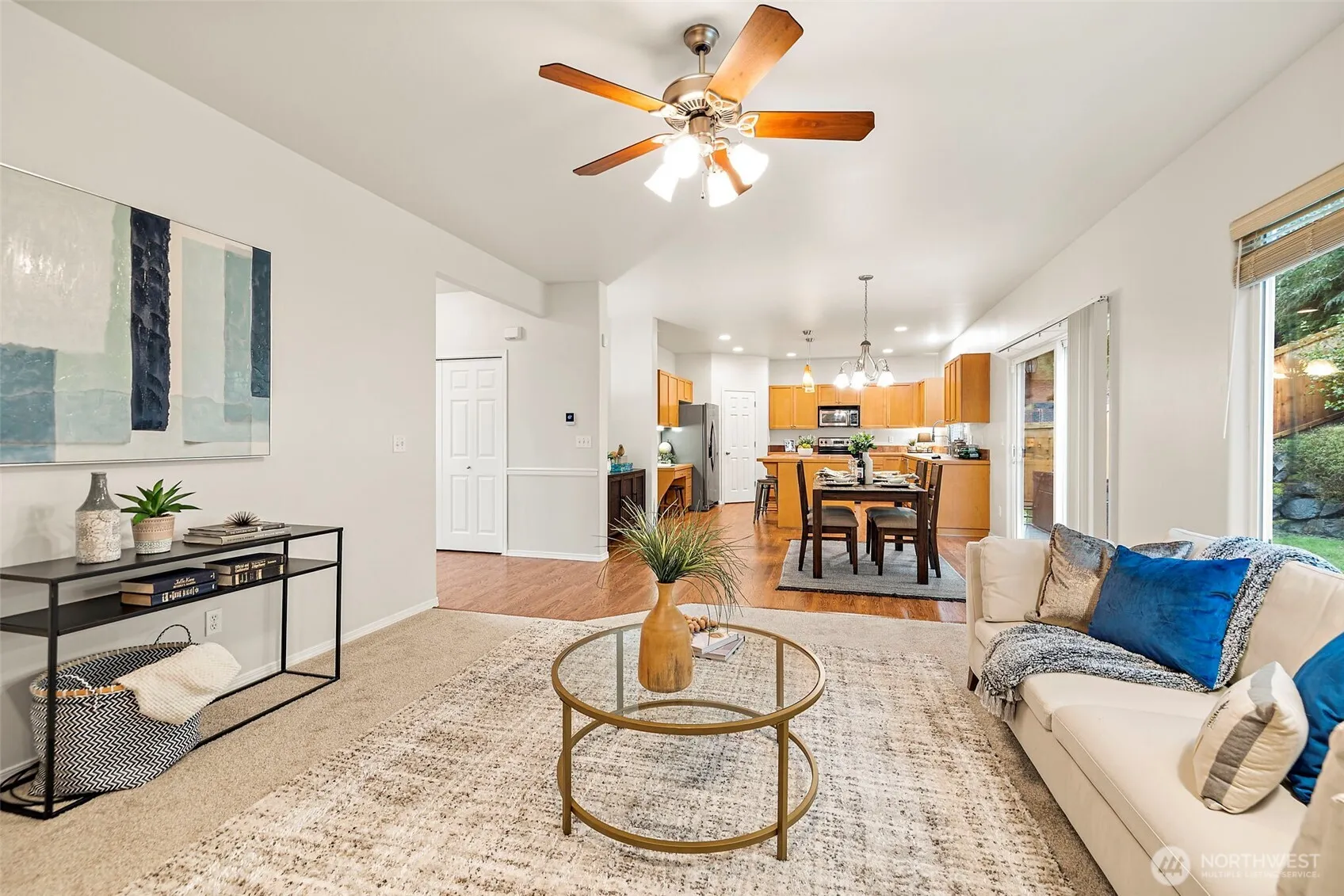 WOW! this turn-key & beautifully refreshed home is tucked away in a quiet corner of Kent’s BEST neighborhood! offering greenbelt privacy & no through-traffic, this gem is perfect for gathering + entertaining & offers the perfect balance of peaceful living and unbeatable convenience! It’s just 2 minutes from Hwy 18 & moments from Lake Meridian, Covington shopping, dining, and Costco. Inside, the home is bright, fresh, and truly move-in ready with BRAND NEW interior paint, BRAND NEW carpet throughout & updated SS appliances! Other Major upgrades include BRAND NEW exterior paint, NEW in 2021 furnace with central A/C, and a NEW back patio with hot tub + poured concrete walkways wrapping around the house. Everyone raves about the massive kitchen, sprawling primary suite w/ 5-piece master bath and the oversized garage w/ workshop space! There’s a massive guest bdrm upstairs that could easily double as a bonus room & the flex bdrm/office downstairs offers immense privacy. DONT MISS THIS ONE!