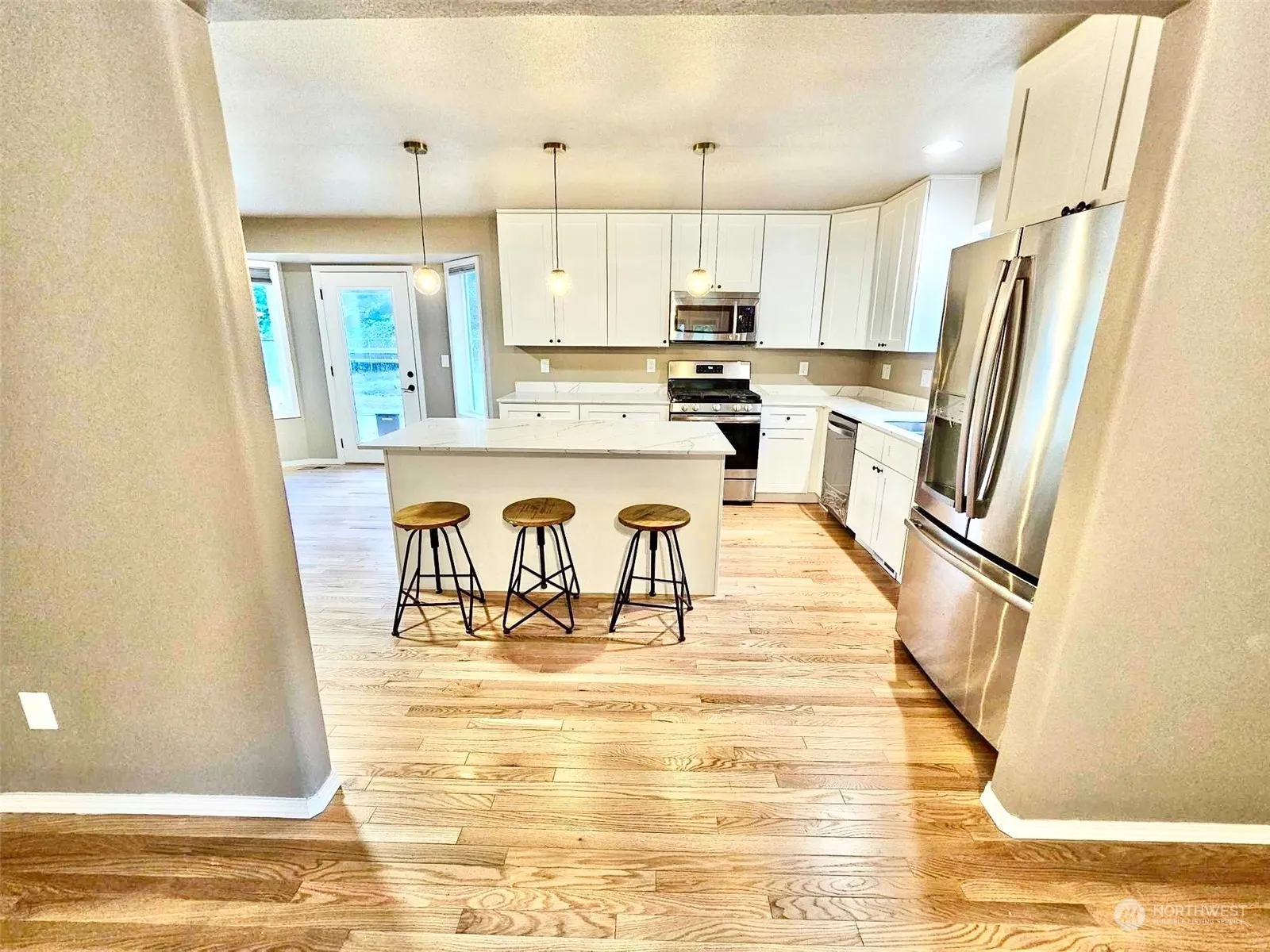 This property is re-entering the market with a revitalized charm, featuring an exquisite kitchen with new quartz countertops & island. The kitchen is equipped with new appliances & cabinetry, including a wine fridge, & hardwood flooring. The guest baths have been thoughtfully renovated, & the large laundry room has a sink, a newer washer & dryer, ample storage space, and 2 car garage & parking. The primary suite features a walk-in closet and a newly designed five-piece bath with a jetted tub and quartz countertops. This property sits on a 1/3-acre lot with a private, fully fenced backyard, bordered by greenbelt, providing space for RV or boat parking. Conveniently located near an elementary school, shopping centers, golf courses, & beaches.