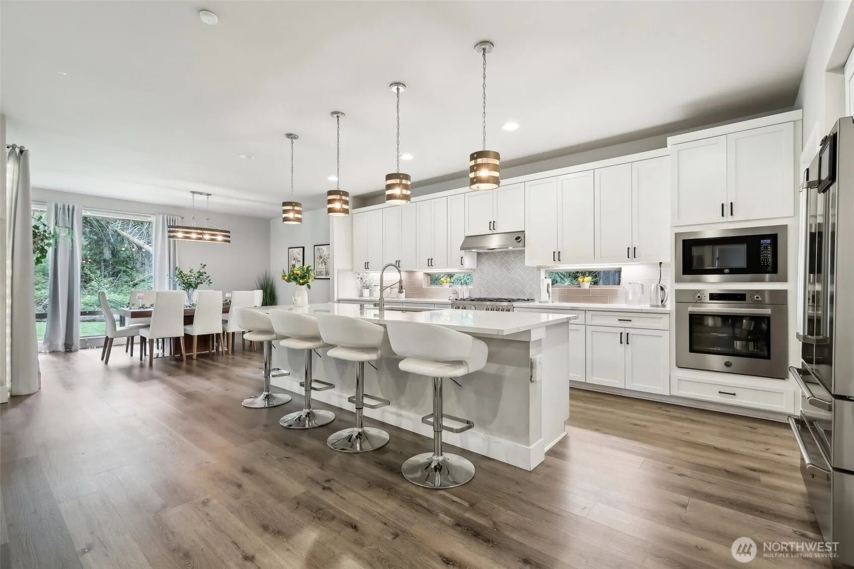 Peace & privacy awaits! This gated 6.5-acre estate features a stunning contemporary home designed for modern living. The open floor plan showcases floor-to-ceiling windows & designer touches throughout. The chef’s kitchen shines w/ white cabinetry, quartz waterfall island, & stainless appliances. Wide-plank flooring & recessed lights complete this stylish, nature-inspired retreat. A covered outdoor living space includes a sleek stone fireplace, wood-paneled ceiling, & dual fans – perfect for year-round enjoyment. The spa-like primary bath offers a soaking tub, dual vanity, hex tile backsplash, & large-format floors. Don’t miss the spacious 3-car garage & fresh landscaping. There is even room for a shop or RV parking!