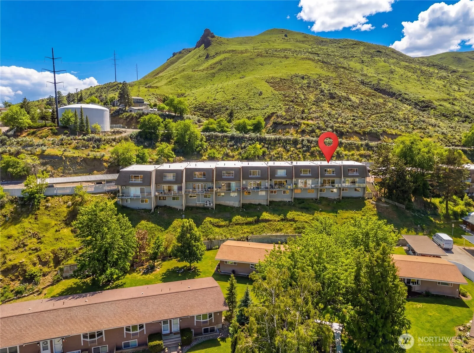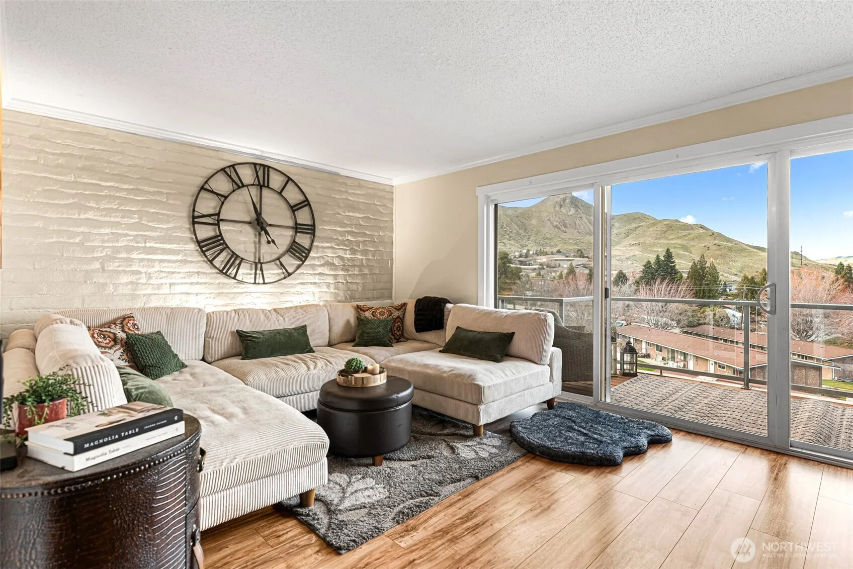 Let the incredible views amaze you each day from this 1500+ sq.ft. two story condo. Views from Castlerock to Burch Mtn., to the winter lights of Rocky Reach Dam! Walk out your door to the Jacobson Trailhead, the WRAC clubhouse, tennis courts, & awesome pool. Very convenient location only blocks to hospital, shopping, restaurants. Both floors have been fully updated with neutral colors, soft finishes, and exposed brick/stone accents. Living and dining room with huge floor to ceiling windows and stone fireplace opening onto new cedar board deck. Huge dining area easily seats 8. New neutral colored tile kitchen features all new top appliances including counter depth fridge, full double ovens, glass cooktop, “quiet” dishwasher, tons of cabinets, and full pantry. This is the only unit that features oversized sliders off the eating area in the kitchen to wonderful “secret garden” patio. Floor plan is open and spacious, perfect for entertaining/gatherings. All new marble and tile baths. Master with views, huge closet with shelving, and shiplap accent wall. Another bedroom with great views, built-in book shelves, and another generous size closet. Third flex room has big closet and “cut out” to add future window, currently used as the “movie” room. Laundry room with new washer/dryer, storage shelves, and hobby area. New hot water tank. All new trim, paint, fixtures, lighting & dimmers, doorhandles, flooring, and more! 2 parking places and small storage closet in parking area.
