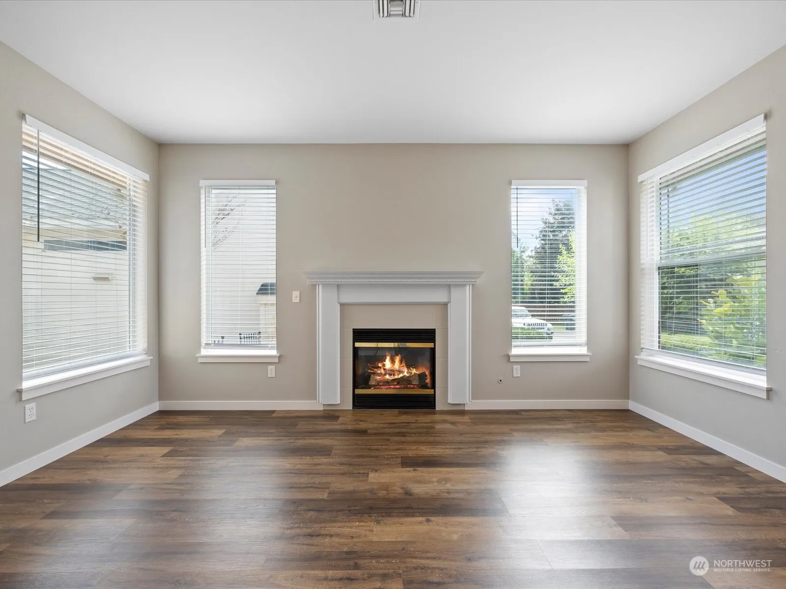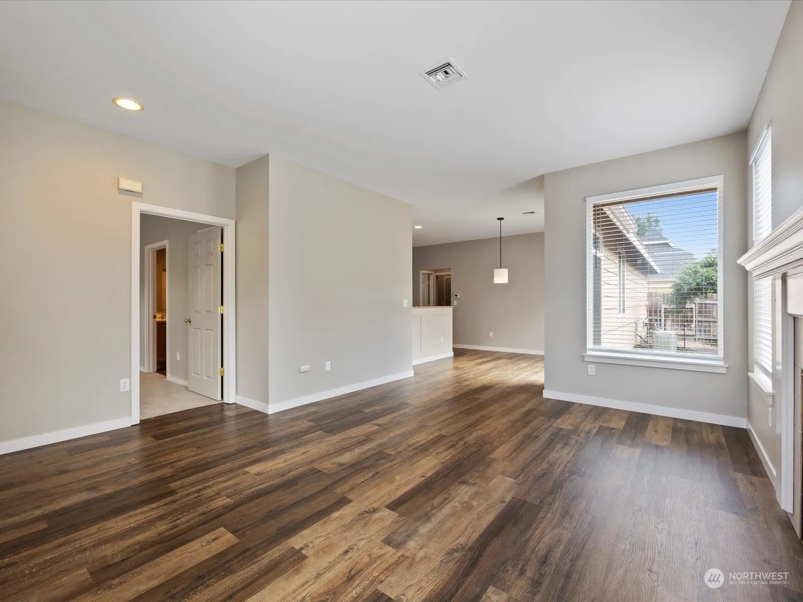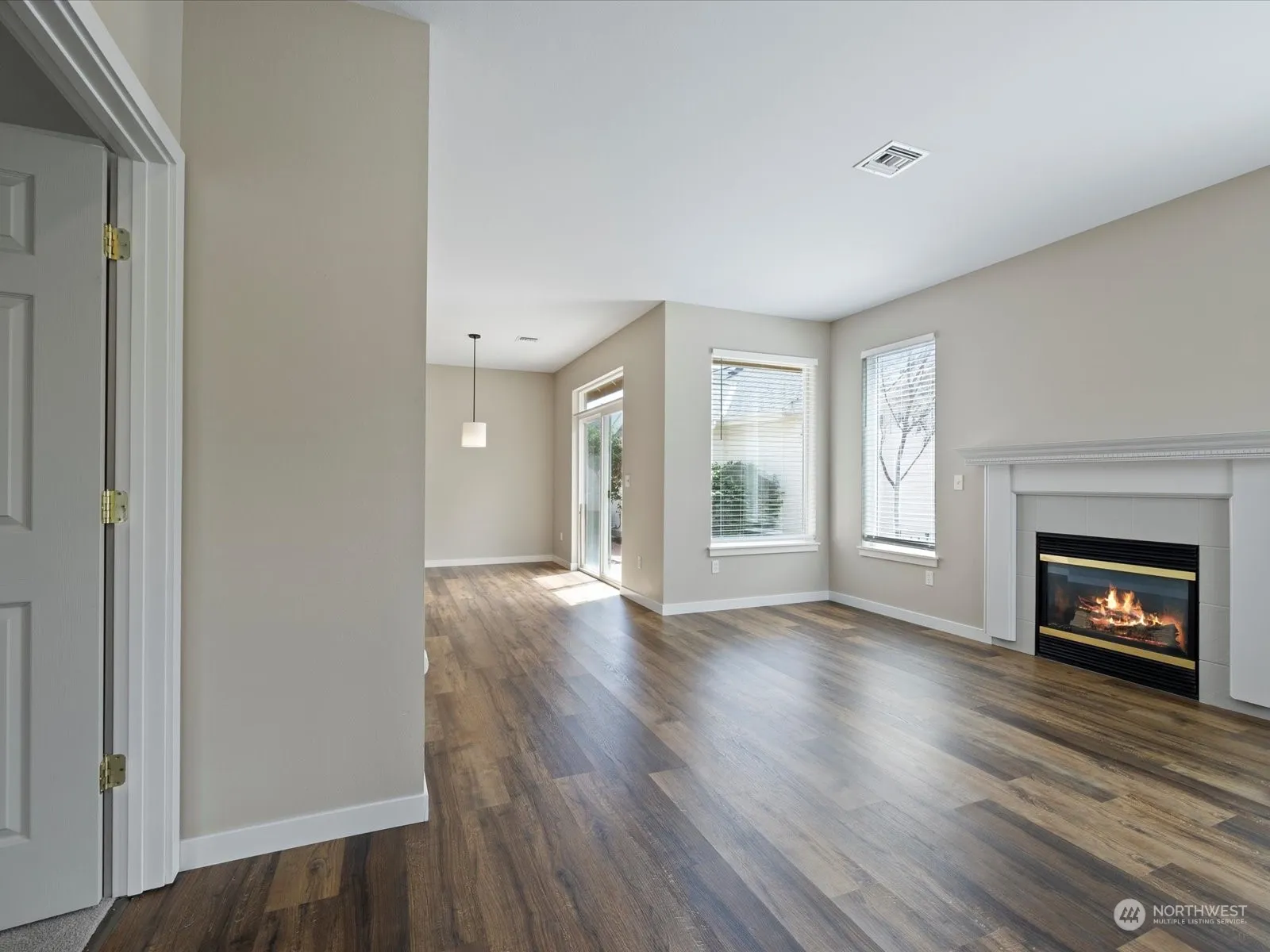Nestled in the highly sought-after Villages of Garrison Creek Community, this one-level home’s open-concept layout seamlessly blends with the warm laminate flooring, creating a cozy ambiance accentuated by the inviting gas fireplace. The gourmet kitchen boasts sleek granite countertops, a stylish tile backsplash, and breakfast bar. The split bedroom design offers privacy and relaxation, with the primary bedroom serving as a serene retreat. Low-maintenance yard, complete with a side patio for alfresco enjoyment. Embrace the natural beauty of the community, with walking trails, ponds, wildlife, and a park right at your doorstep. Welcome to your new home, where comfort and convenience harmoniously intertwine.