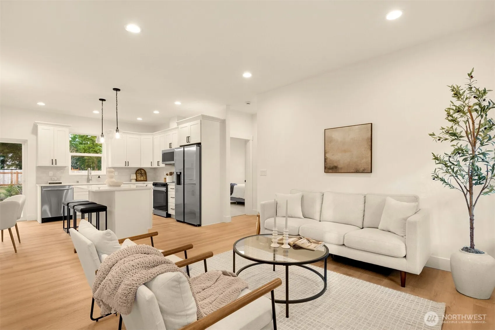 Introducing this beautifully crafted new construction rambler set on a level 1.59-acre lot, offering the perfect blend of comfort, efficiency, and space. This thoughtfully designed home features 3 bedrooms and 2 bathrooms with 9-foot ceilings that create a bright, open feel throughout. The large kitchen is ideal for cooking and entertaining, complete with stainless steel appliances and plenty of workspace. The spacious primary suite includes a private bathroom and walk-in closet. Beautiful natural color finishes provide a warm, timeless look. Built with energy-efficient Mitsubishi heat pump and water heater, Energy Heel trusses for improved insulation, and air conditioning for year-round comfort. Complete with a fully finished and insulated 2-car garage equipped with EV charger plug. The large corner lot with private well offers plenty of room for outdoor living, gardening, recreation, or future projects. Enjoy peaceful surroundings on the covered porch or deck while still being conveniently located by the freeway, city amenities, shopping and dining.