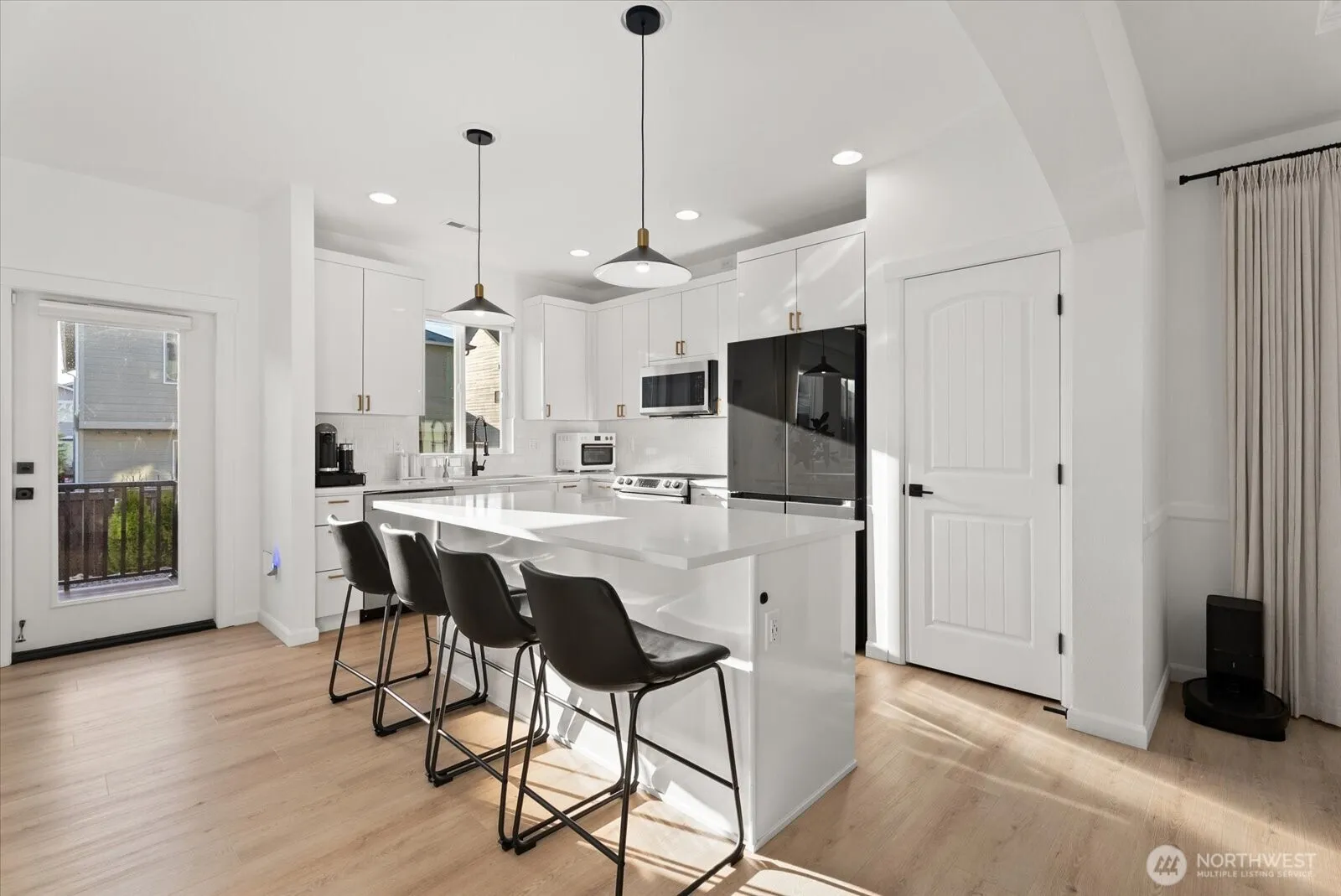 Refined living in this beautifully upgraded home showcasing exceptional style and pride of ownership with over $50,000 in thoughtful upgrades. The fully remodeled kitchen features sleek high-gloss flat panel cabinetry with elegant gold finishes, quartz countertops, and updated designer lighting over the dining area and island. Modern LVP flooring flows throughout, complemented by a stunning stone-surround fireplace that anchors the living space. Expansive formal dining room offers the perfect setting for gatherings and entertaining. Bathrooms have been thoughtfully updated with modern finishes, and the home is equipped with Hunter Douglas automated blinds for added comfort and convenience. Meticulously maintained and truly move-in ready. Enjoy a low-maintenance backyard with a spacious deck ideal for entertaining. Featuring 4 bedrooms, 2.5 baths, and a 2-car garage. Ideally located across from a community park and minutes to shopping, transit, freeways, train, and Kent Station.