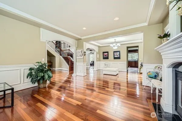 A Private Luxury Estate on Nearly 7 Acres.Experience unparalleled luxury in this 6,430 sqft custom-built estate nestled on 6.88 acres in Kent’s prestigious Lake Youngs area. 6 spacious bedrooms, each with its own ensuite bath, including a grand primary suite featuring dual entrances, a private lounge, a 5-piece spa bath, and a Juliet balcony overlooking the serene grounds.The chef’s kitchen is a culinary dream with oversized custom counters and high-end appliances, seamlessly flowing into expansive living and dining areas adorned with vaulted ceilings and four fireplaces. The daylight basement offers a separate entrance, a second master suite, guest bedroom, and a king-sized wet bar ideal for multigenerational living. Outdoors enjoy a gate