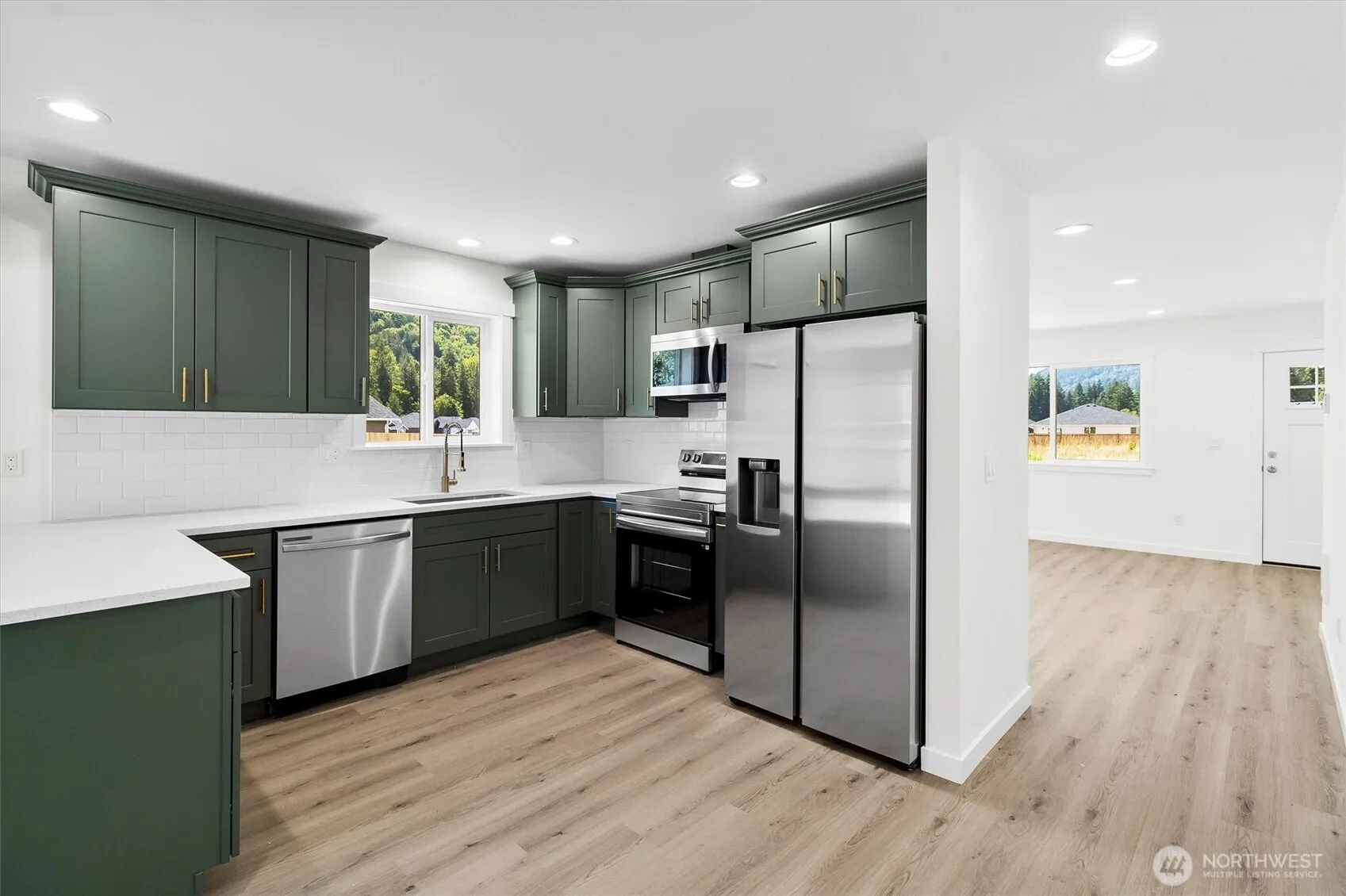 Brand new quality-built home in a fantastic gated development. This new, 3 bed, 2 bath home featured a two car garage on really nice sized 9,357square foot lot. Enjoy the luxury vinyl plank flooring throughout, stainless appliances package, quartz counters, dual sinks in primary bathroom and a one head mini-split unit that provides low-cost heating and A/C! Popular U-shaped kitchen with shaker style quality soft close cabinets (in olive green!!) & a nice patio off the dining area. Only 30-minute drive from Bellingham. One year builder warranty included & garage has plug for electric car charging & home is wired for generator! Enjoy living in a brand new gated development with stunning mountain views!