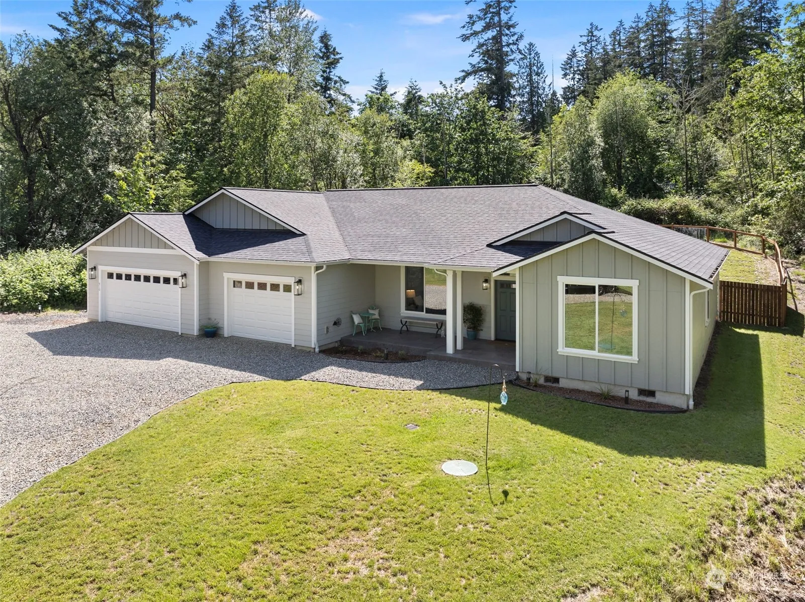 Welcome to this stunning, newly constructed modern farmhouse rambler, nestled on an expansive 1-acre lot in the highly sought-after location of Fox Island! This 3BR, 2.5BA with office/den offers grand open-concept living w/ vaulted ceilings & large windows that allow in all the natural light, a gourmet kitchen w/ top-of-the-line appliances, & gorgeous quartz countertops, a full butler’s pantry, & high-end finishes throughout. Enjoy the large covered patio, private fully fenced backyard, easy landscaping, & RV/boat parking with 50-amp/septic hook-ups. 3-car garage & easy access to amenities, parks, community beaches, Gig Harbor & Hwy 16. Embrace luxurious living in this elegant retreat. Don’t wait—experience this exceptional home today!
