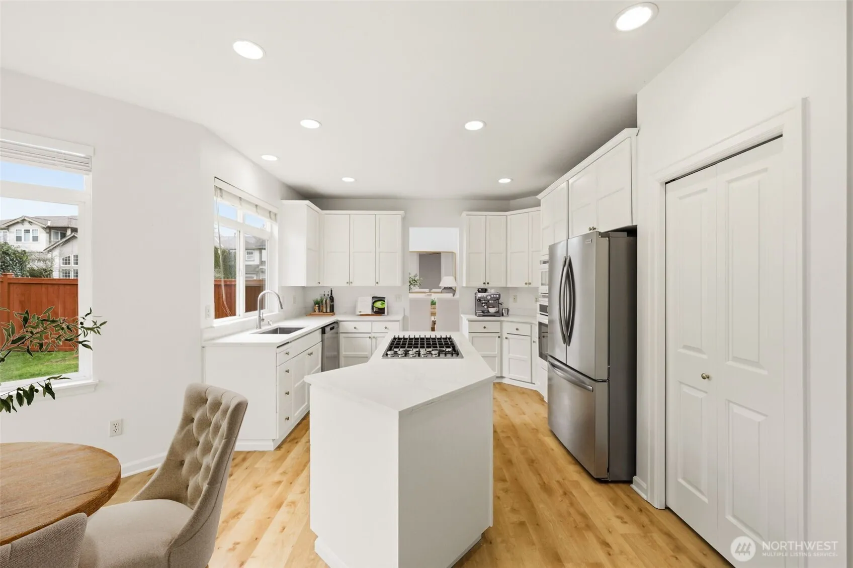 Beautifully refreshed 4-bedroom home in the desirable La Crosse community near Newcastle, offering an ideal blend of comfort and style. The thoughtful floor plan features three inviting living spaces on the main level (living, dining, and family rooms) with vaulted ceilings that create a bright and open feel, plus four bedrooms upstairs, creating a layout that works beautifully for both everyday living and entertaining. Recent updates include brand-new interior paint, quartz kitchen countertops with backsplash, a new stainless range and refrigerator, updated lighting throughout, a refreshed primary bath with a new tile shower surround, and a brand-new water heater. Additional improvements include extensive living areas with durable hardwood floors, new LVP flooring, and new luxury carpet adding comfort to select rooms. Enjoy a rare three-car garage and step outside to a fully fenced flat backyard with fresh landscaping, perfect for relaxing, playing, or gatherings. Conveniently located near parks, amenities, and good schools with easy access to I-405, plus a short distance to Sea-Tac Airport, downtown Bellevue, Seattle, and Issaquah. Beautifully updated and move-in ready.