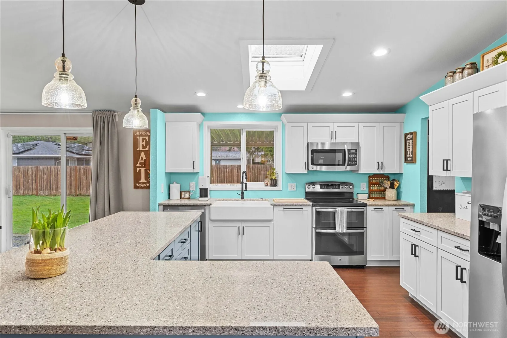 Welcome home to this dialed in rambler! Perfect for those who need a shop/garage and several outbuildings. Completely updated and gorgeous inside! Enjoy the open concept kitchen with granite, farmhouse sink, double oven and all new cabinetry. Featuring a formal living room and separate family room, there is space for everyone. The primary bathroom includes a one of a kind, luxurious shower for two. Air conditioning, new roof, paint, hardwood floors, this place has it all! Completely fenced with a privacy gate and GIANT play structure in the yard. Corner lot, private road and NO HOA. 1.24 flat acres to spread out and enjoy the county life! Oh and did I mention hot tub? Grab your agent and schedule a showing today!