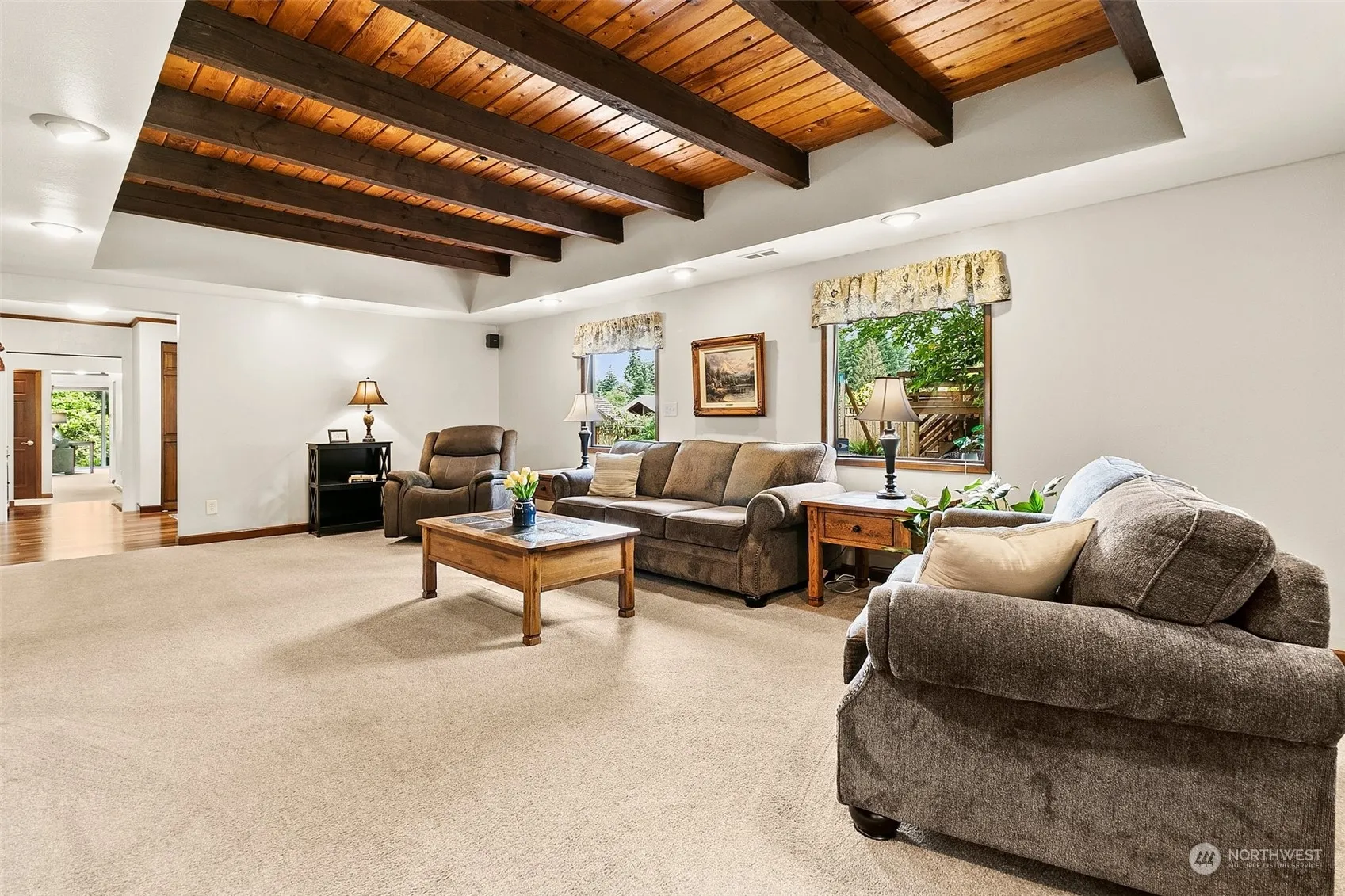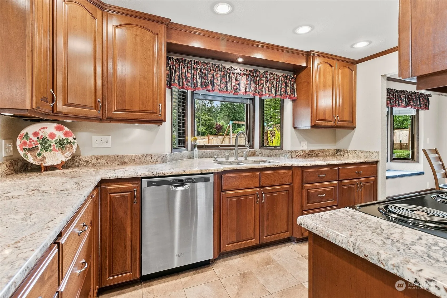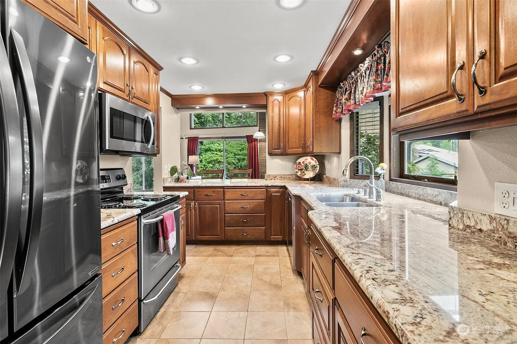 This well maintained 3 bedroom, 2 bath home, sits on a shy half acre paradise, at the foothills of the Issaquah Alps, is a rare find in Maple Valley. The primary bedroom offers vaulted ceilings, dual closets, & separate reading or music room. Versatile gathering spaces are perfect for easy living or entertaining & each has a wood stove. Enhanced kitchen w/granite counters, cherry cabinets, stainless appliances & heated floors. A huge office/hobby room could be a 4th bedroom. This haven of rest extends outside w/ a perfectly landscaped yard that envelops you w/ azaleas, rhodies & lots of berry bushes. Outdoor areas include new wrap around deck, play toy, garden boxes, & fire pit. Desirable Tahoma Schools. Bonus: New septic & grass installed!