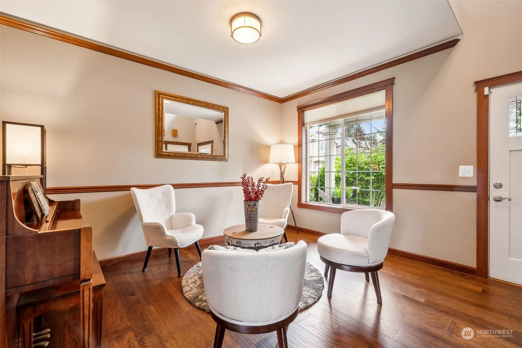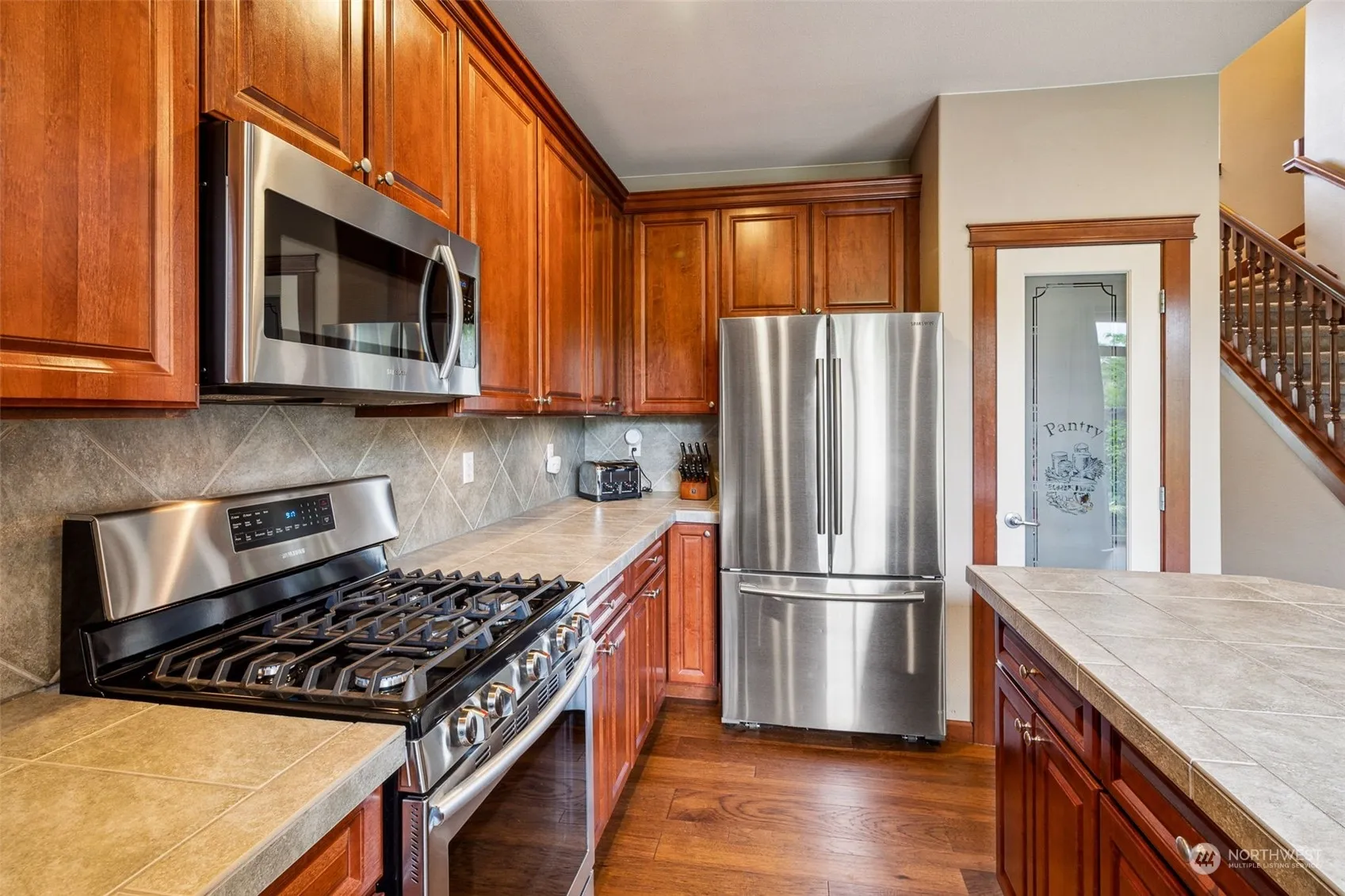 Welcome to your dream home! This immaculate 3-bd, 2.5-ba. residence is move-in ready and sits on a spacious corner lot with an extended driveway. Enjoy elegant Cherry cabinets, stainless steel appliances, GAS cooking, wood-wrapped details, and newly engineered HDWD floors. Additional features include Air Conditioning, central vacuum plumbing, pre-wiring for security, a cozy gas fireplace with a brick surround, and designer paint. The primary suite boasts a luxurious 5-piece bath, a private backyard, mature landscaping, and an oversized patio, this home is perfect for entertaining. Large front porch, shed, water feature, and more! Home is located in the desirable Meadows at Rock Creek, close to top schools, parks, trails, golf, and shopping.