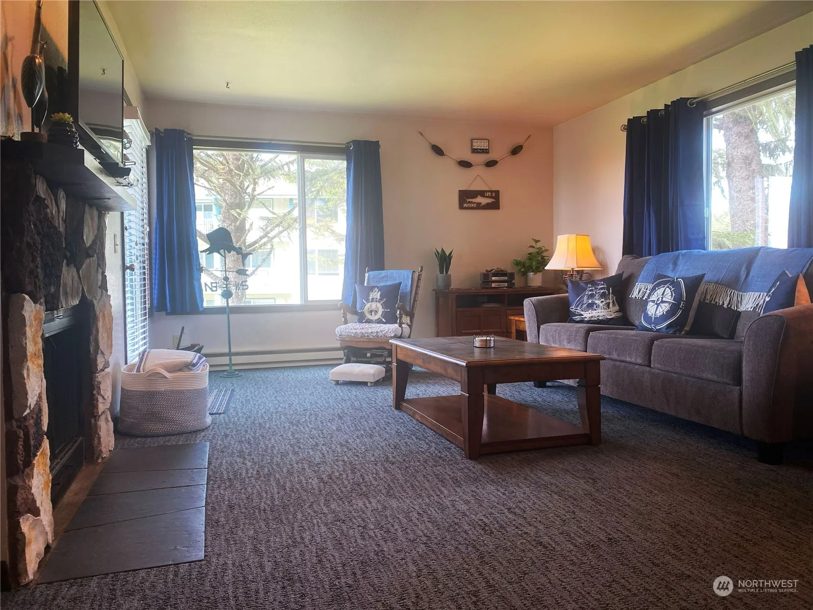 Beautifully fully furnished second floor unit offers extra privacy. Take in sunset views from the deck overlooking spacious outdoor areas. Many amenities for entertaining including covered large barbeque area, volleyball court and playground. This unit has been remodeled and boasts a wood burning fireplace great for cozy winter storm watching. Steps to indoor pool and jacuzzi as well as outdoor gated adults only jacuzzi. Private maintained beach trail the property also offers direct access to Discovery Trail, ride your bike or walk to town. 24 hour lobby includes bike rentals and firewood. Your own private getaway or make it an income property by adding it to the rental pool, breakers will take care of the details.