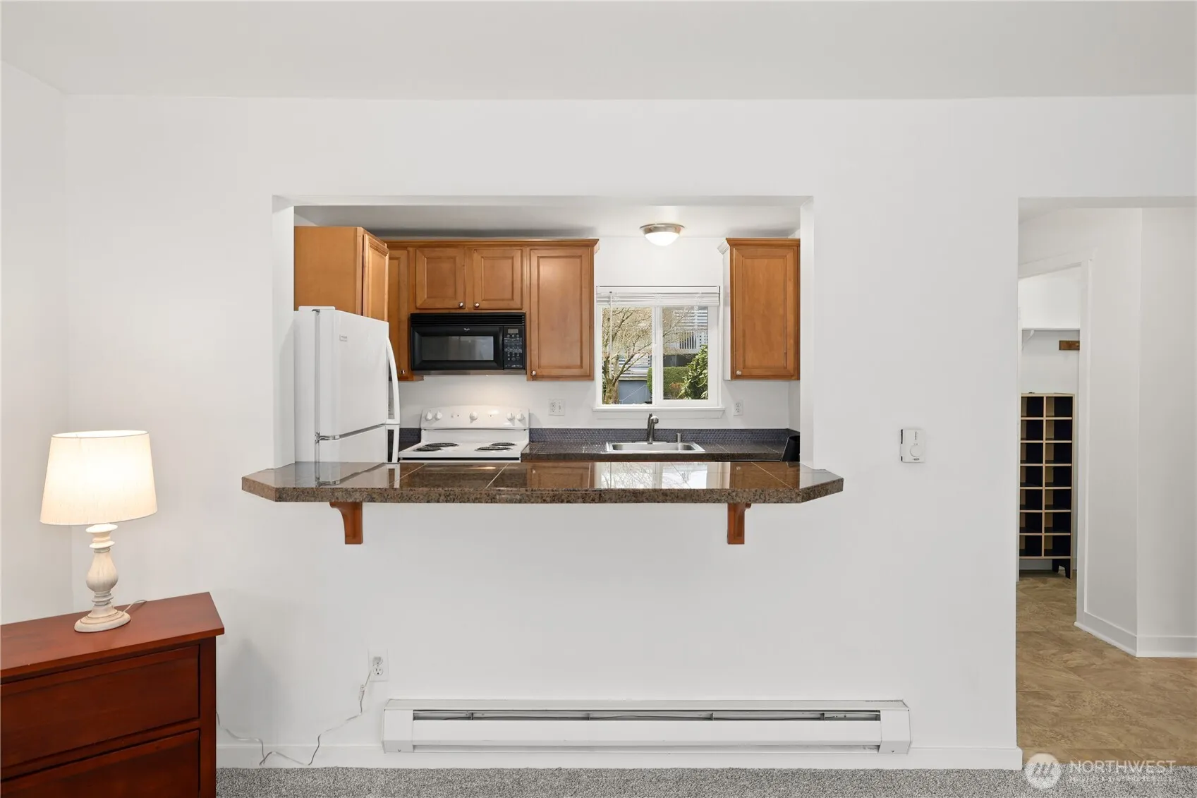 Experience the perfect blend of convenience and comfort in this adorable updated Des Moines condominium, ideally situated just one block from the Marina and Beach Park. This end-unit home offers a peaceful retreat with a practical layout and several recent refreshments that make it move-in ready. Step inside to find a clean, inviting interior featuring brand-new carpet and a fresh coat of paint throughout, providing a neutral canvas for your personal style. The kitchen is well-equipped with durable granite countertops and a functional eating bar that opens directly into the main living area, making the space feel connected and open. Originally remodeled from the studs in 2006, the unit maintains a contemporary standard of quality, including a bathroom finished with granite accents. For added convenience, the home comes with all appliances, including a washer and dryer combo. One of the most practical features of this unit is the designated parking space located just steps away from your front door, ensuring easy access. You will also enjoy an enclosed patio/courtyard—a quiet spot for fresh air and relaxation. Located in a “silent zone,” the community is professionally managed. You are only a short stroll from local cafes, shops, and the scenic waterfront, with quick access to major freeways for an easy commute. Whether you are a first-time buyer or looking for a manageable home by the water, this condo offers exceptional value in a prime location.