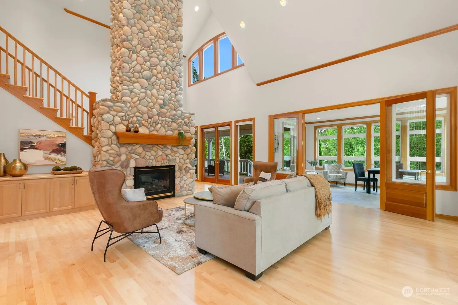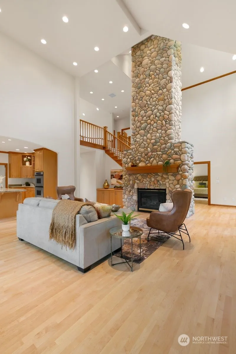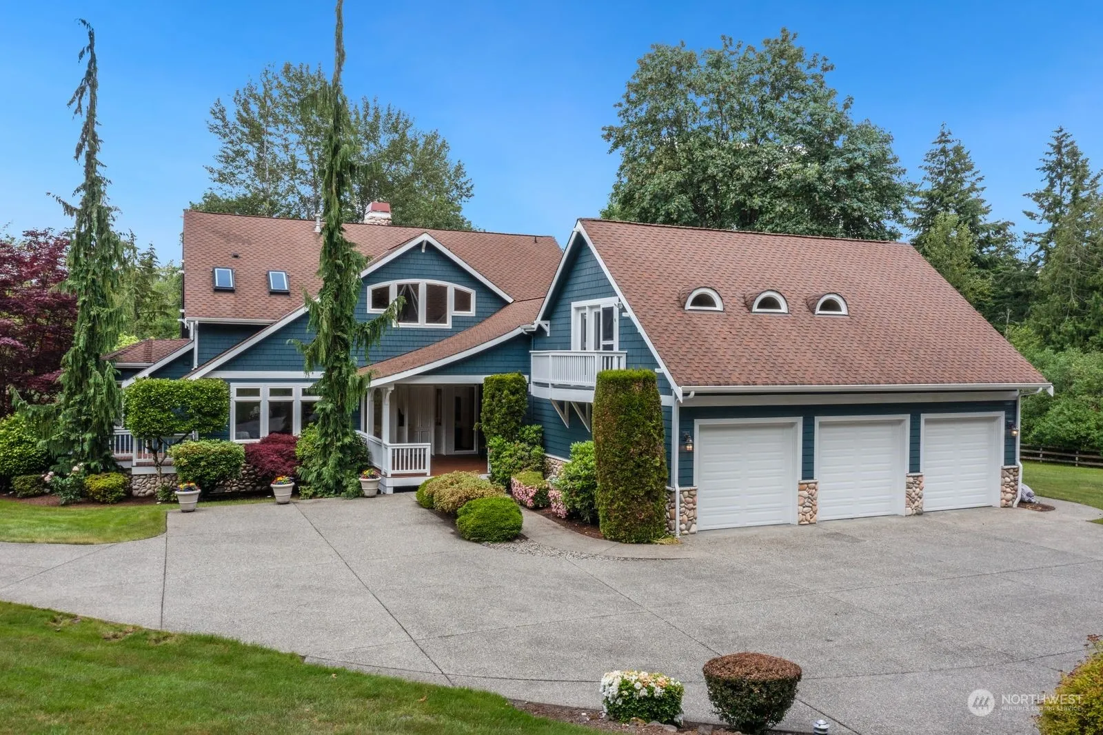 Beautiful 1 owner home on a lovely 2.69 acre lot in a gated community, The Ridge in Maple Valley. The newly painted home has a huge front porch that greets you into the grand foyer. The main level has a large office & a wonderful greatroom with 2 story ceiling & a custom stone fireplace that is the focal point of the home. The living rm is open to the dining rm w/so much natural light & the island kitchen w/granite counters. The large porches front & back are so charming! Newly refinished hardwood floors & new interior paint. The primary bedroom with 5-piece en-suite bath & walk in closet & window seat. Upstairs are 2 bedrms & a full bath. Huge bonus room w/kitchenette – perfect rec room, 4th bedroom, gym, apartment & more!