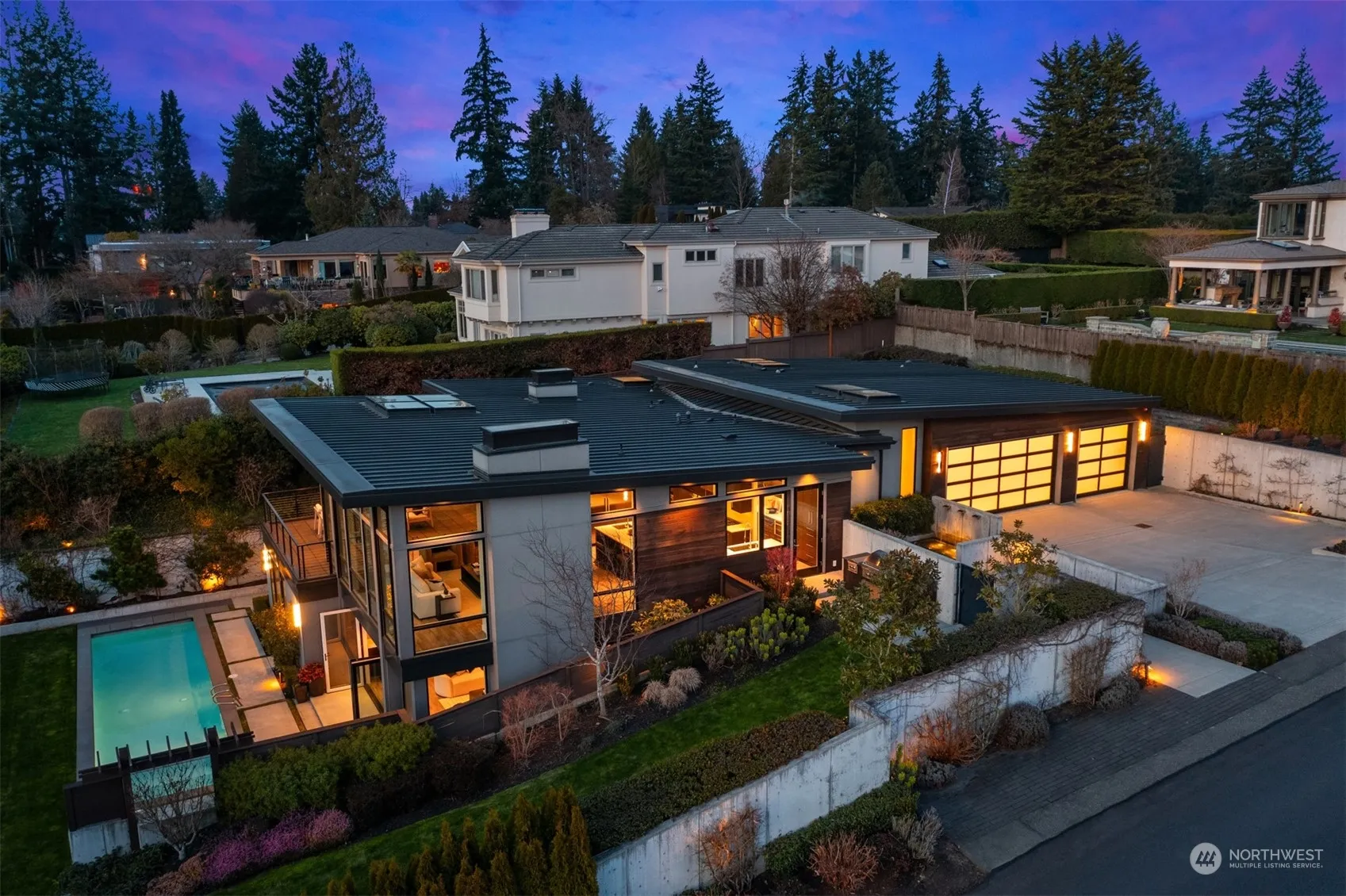 Sited at the apex of Clyde Hill, this remarkable NW contemporary residence is enveloped in privacy and lush landscaping, making a striking impression. Crafted by Baylis Architects and constructed by Gayteway Custom Homes, it presents a seamless fusion of seclusion and breathtaking views. The home boasts 5 spacious bedrooms, 6 bathrooms, and innovative NanaWall systems that dissolve the boundaries to outdoor living spaces. Expansive patios and decks, adorned with cozy outdoor fireplaces and a resort-caliber pool and spa, offer an invitation to year-round enjoyment of the PNW’s beauty. Complete with a private gym, home theater, and a spacious 3-car garage, this home is an ode to luxury and comfort, providing an unrivaled living experience.