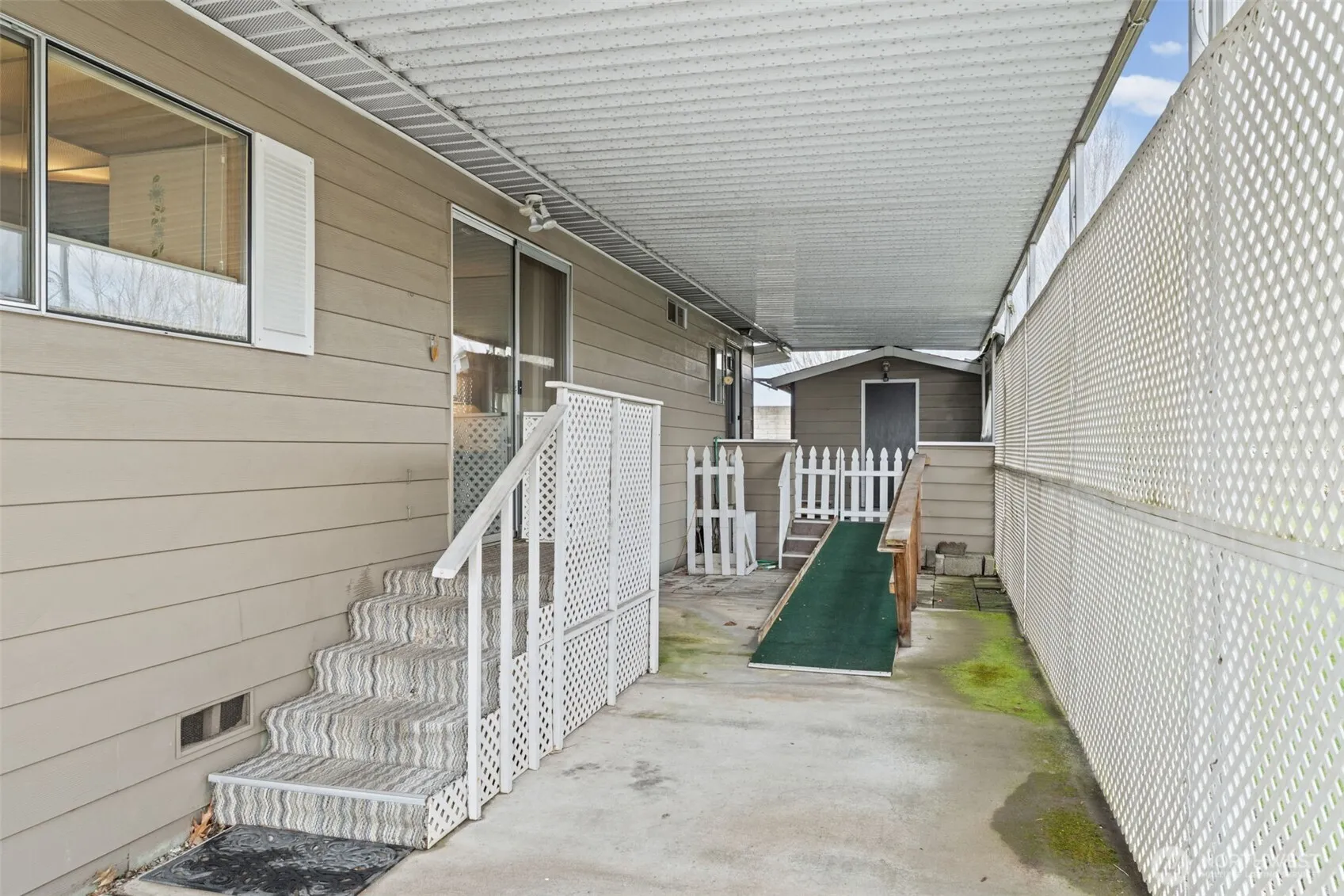 Welcome to Rio Verde Estates and this beautifully maintained home located in Auburn’s premier 55+ gated community. Offering 1,368 square feet of comfortable living space, this home features 2 bedrooms and 1.75 bathrooms in a bright and thoughtfully designed layout. The spacious living and dining rooms are filled with natural light from a wall of south-facing windows, creating a warm and inviting atmosphere. A cozy gas fireplace in the sitting area just off the kitchen provides the perfect place to relax year-round. The galley-style kitchen offers abundant cabinetry, functional workspace, and attractive updated wood flooring. The primary bedroom is privately located at the back of the home and includes its own bath for added comfort. A second full bathroom serves guests and the additional bedroom. The generous laundry room provides extra storage and convenient access to the backyard and large storage shed. A heat pump provides efficient year-round heating and cooling for added comfort. This home offers exceptional value within the community and provides an affordable opportunity to enjoy comfortable, low-maintenance living. Residents of Rio Verde Estates enjoy an active lifestyle with amenities including a clubhouse, organized social activities, park, gazebo, RV parking, and an exercise room—all within a friendly and welcoming neighborhood.