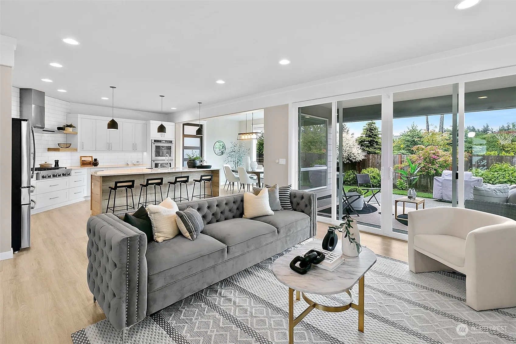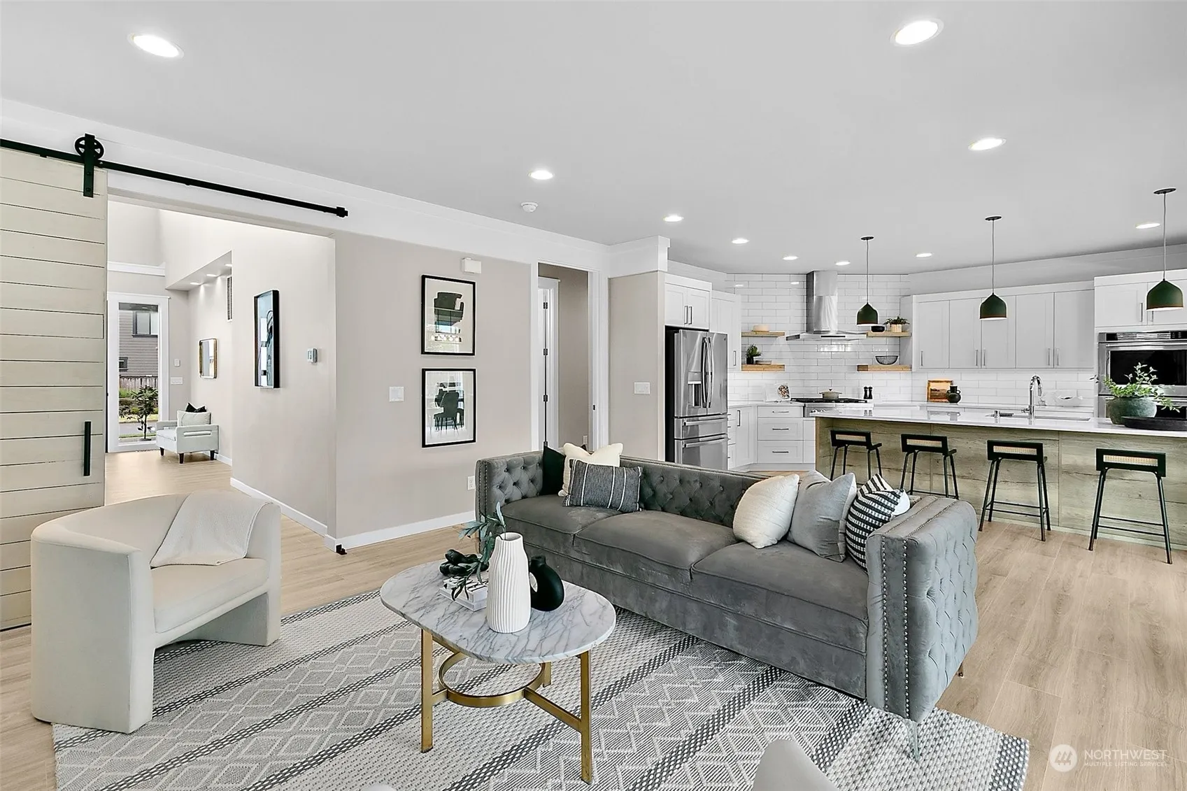 Step into this exquisite Luxury Curtis Lang resale! The bright open foyer passes a half bath and leads to the chef’s masterpiece with quartz counters, SS appliances, and a generous walk-in pantry. Entertain effortlessly in the bright living and dining area flowing onto the covered patio, complete with AC and sprinkler system. Enjoy a main floor suite with a private bath and walk-in closet. Upstairs, a bonus room awaits your personal touch. The owner’s retreat features a spa-like bath with double sinks, stand-up shower, and walk-in closet, plus a cozy sitting area. Three additional bedrooms and a convenient utility room complete the upper level. Positioned on a corner lot with a serene park behind, indulge in luxury living.