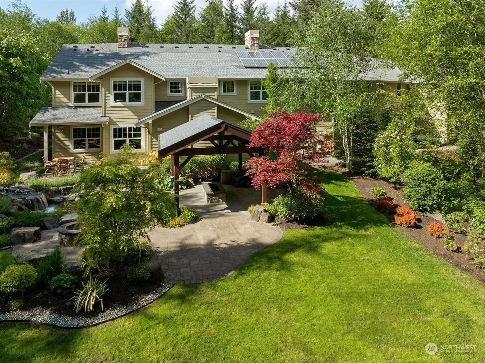 Seller offering a 3/2/1 Buydown or $75,000 closing credit with acceptable offer. Contact agent for details. This gated 2.15-acre estate personifies luxury living, featuring over 4 beds & 5.25 baths, encompassing 6,853 square feet. The expansive floorplan includes bonus rooms, a game room, a movie theatre w/adjoining parlor, office, and exercise room. Elegance is evident in every detail, from the exquisite crown molding to the warmth of a floor-to-ceiling stone fireplace. Additional conveniences include 4-car garage w/workshop, energy-efficient solar & geothermal heating. The beautifully landscaped, park-like grounds feature a waterfall, a propane fire table, a wood-burning firepit, a treehouse/fort, a greenhouse, a shed, and walking paths.