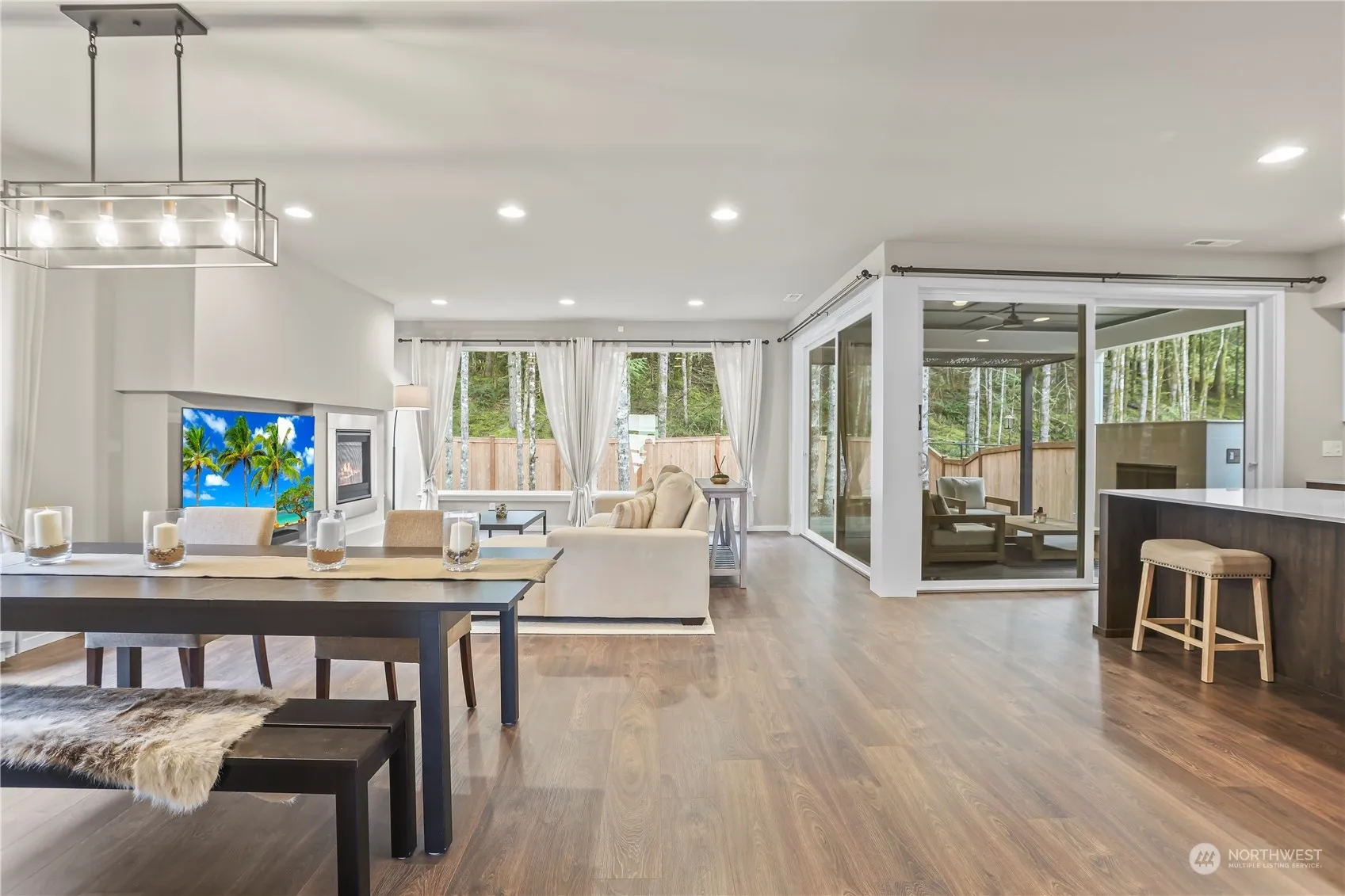 The best of both worlds – A great neighborhood feel in front & a sense of privacy with nature out back. Enjoy morning coffee gazing out over the wooded area & close out the end of the day on your large covered back patio. This stunning home is better than new – it doesn’t even look like anyone lived here. A modern kitchen & great room concept greet you downstairs. There are two additional rooms on the main floor – flex space? Home office? Play room? Or make one a bedroom (super easy to add a shower to the downstairs bathroom if you want). Upstairs is a gorgeous primary bedroom with two closets & a spa-like bathroom. 3 additional bedrooms (one with en-suite) & a loft provide lots of room upstairs. Great closet & storage space throughout.