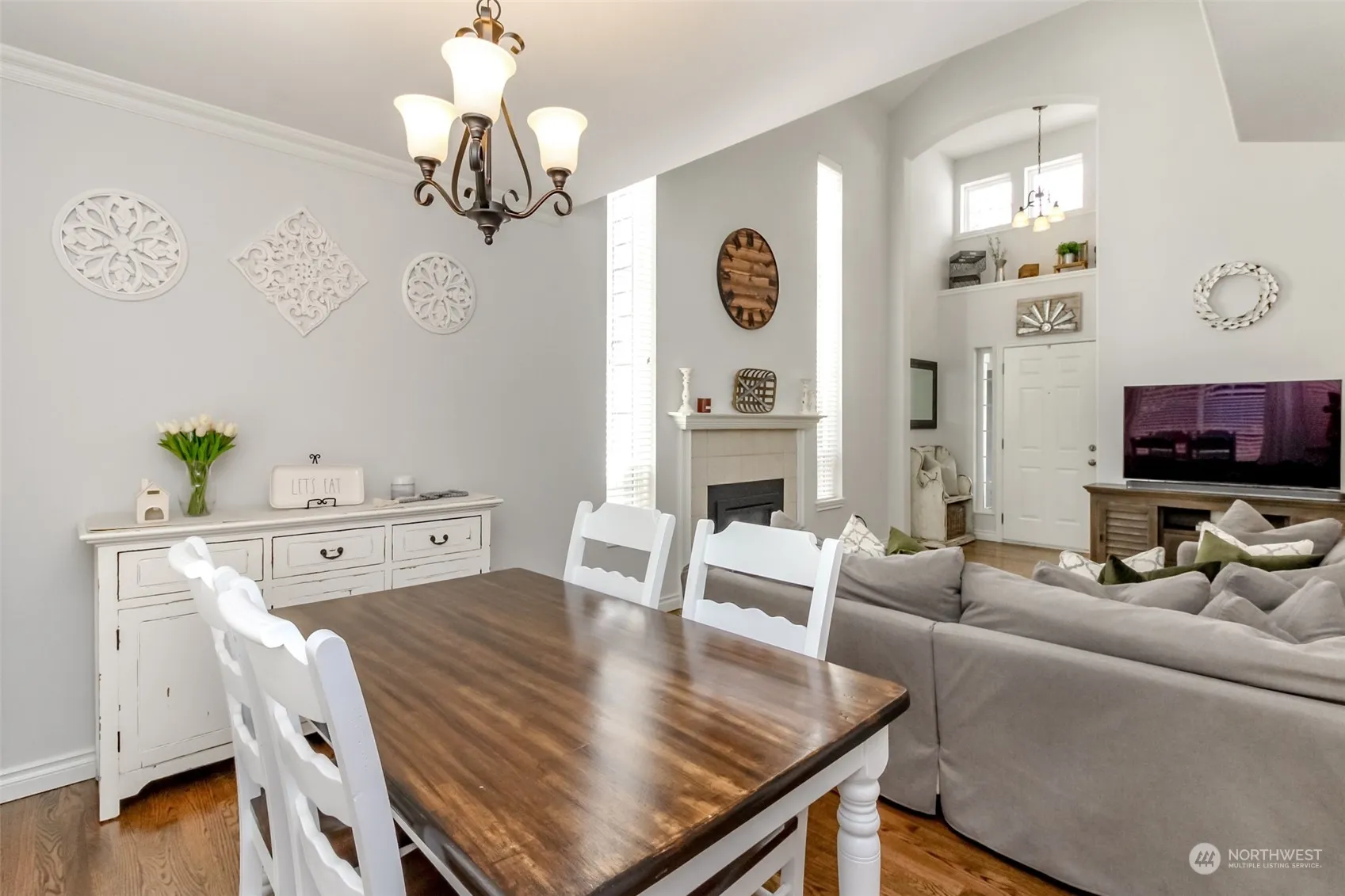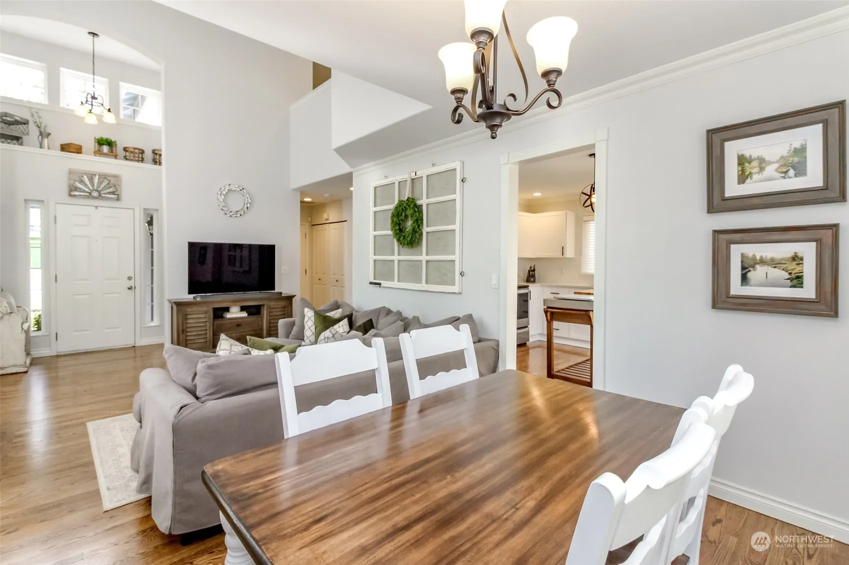 Welcome to this beautiful 3 bedrooms, 2.25 bath turnkey home. The entry opens to soaring vaulted ceilings that lets in tons of natural light. The light filled living & dining rms have refinished hardwood floors & a fireplace. The hardwood floors continue into the updated kitchen w/ stainless steel appliances & quartz countertops. Upstairs has full bath & two bedrooms & a primary bedroom w/two closets and primary bath. The slider from the kitchen opens to a large outdoor patio, perfect for outdoor entertaining & fully fenced backyard with sprinkler system. All appliances stay to make this home move in ready. A desirable location close to award-winning Tahoma schools, Shopping, Restaurants, Golf Courses, Parks, & minutes from Hwy 18 & 169.